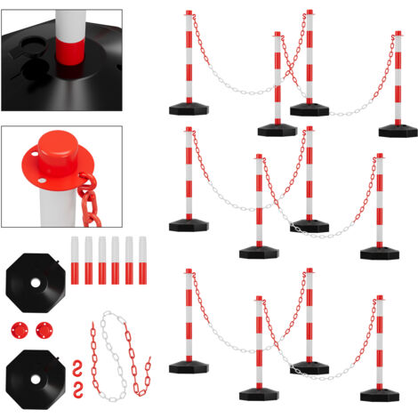 Pass auf, diese vidaXL Absperrpfosten sind ideal, um Gefahrenstellen zu markieren oder Flächen abzusperren. Das Set hat 10 Stück, jeweils 75 cm hoch und aus leichtem PE-Material. Der Durchmesser der Basis beträgt 20 cm. Die Pfosten sind rot-silbern und haben silberne Reflexionsstreifen, sodass sie auch nachts gut sichtbar sind. Super einfach umzustellen und reduzieren Staus effektiv. Lieferung inklusive 30 Befestigungsschrauben. Perfekt für Parkplätze, Baustellen oder Events – damit alles sicher und geordnet abläuft!