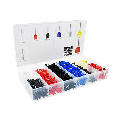 Riesiges Sortiment mit 1200 Teilen! Dieses Aderendhülsen-Set hat alles was du für Elektroinstallationen brauchst. Von 22-7 AWG, das entspricht 0,5-10mm² Kabelquerschnitt. Hergestellt aus Kupfer mit verzinnter Oberfläche und PVC-Nylon Isolierung - super leitfähig und langlebig. Einfach zu verarbeiten mit Crimpzange. Enthalten sind: 250x Schwarz (16 AWG), 250x Blau (14 AWG), 200x Weiß (22 AWG), 200x Grau (20 AWG), 200x Rot (18 AWG), 50x Grau (12 AWG), 25x Gelb (10 AWG), 25x Rot (7 AWG). Perfekt für Verteilerkästen, Industrieanlagen oder Heimwerker-Projekte.