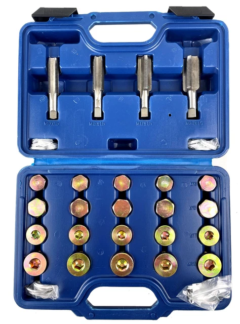 Autobesitzer aufgepasst! Nichts ist nerviger als n beschädigtes Gewinde an der Ölwanne. Mit diesem 13-teiligen Reparatur-Set von JUMPLAWN gehört das Problem der Vergangenheit an! Die Werkzeuge sind aus robustem Karbonstahl und machen genau das, was sie sollen: kaputte Gewinde wiederherstellen. Einfach das beschädigte Gewinde auf Übermaß schneiden, neue Ablassschraube mit Unterlegscheibe rein - und schon läuft nix mehr aus! Super praktisch für die eigene Garage oder Werkstatt. Die Tools sind kompakt (4,3x2,5x2,3cm) und passen in jede Werkzeugkiste. Egal ob Ölwanne oder Differential - mit diesem Set bist du für alle Fälle gewappnet. Spart ne Menge Geld im Vergleich zur Werkstatt! Einfach mal probieren - dein Auto wird's dir danken!