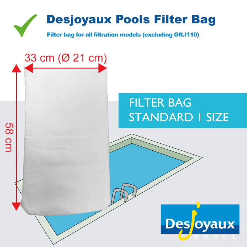 Perfekt für deinen Desjoyaux Pool! Diese 2 Filtertaschen von Lodd Pool mit 15 Mikron Feinheit sorgen für kristallklares Wasser. Einfach zu wechseln und kompatibel mit fast allen Desjoyaux Filtersystemen - nur nicht mit dem GR.i 110. Mit den praktischen Maßen 58x33 cm passen sie genau und halten selbst feinste Schmutzpartikel zurück. Französische Qualität, die überzeugt! Damit wird die Poolpflege zum Kinderspiel und du kannst dich ganz entspannt zurücklehnen. Übrigens: Regelmäßiges Wechseln der Filtertaschen verlängert die Lebensdauer deiner Pooltechnik!