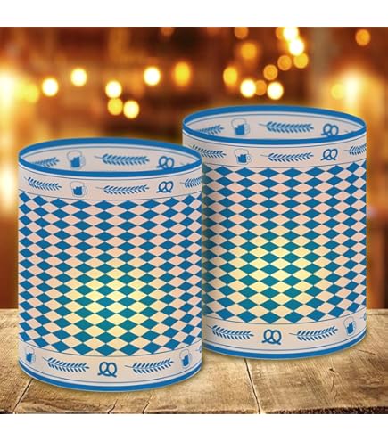 O'zapft is! Mit diesem 16-teiligen Windlicht Set holst du dir echte Oktoberfest-Atmosphäre nach Hause. Die beiden verschiedenen Designs sind mit typischen Motiven wie Bierkrügen, Brezeln, Würstchen und Bierfässern bedruckt - da fehlt nichts! Einfach zusammenstecken, Teelicht rein und schon verbreiten die Windlichter gemütliches Licht und echten Wiesn-Charme. Die Maße von 27x10 cm (ausgeklappt) sind perfekt für Tische, Fensterbänke oder die Bar. Hochwertiges Material das lichtdurchlässig ist und nach der Party platzsparend zusammengeklappt werden kann. Super für Oktoberfest-Partys, bayerische Abende oder einfach nur um deinem Zuhause etwas Feststimmung zu verleihen. Das Aufbauen ist kinderleicht: Folie umbiegen, überstehenden Teil in die Nut stecken, fertig! Die fröhlichen Farben und das authentische Design machen jede Feier zum Erfolg. Auch ein tolles Geschenk für Freunde und Familie, die Bayern-Fans sind. Mit diesen Windlichtern wird jede Party unvergesslich - Prost!
