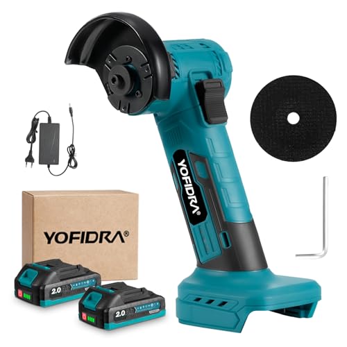 Yofidra 21V Mini Winkelschleifer Set - 19000 U/min Mit 2 Akkus & 76mm Trennscheibe