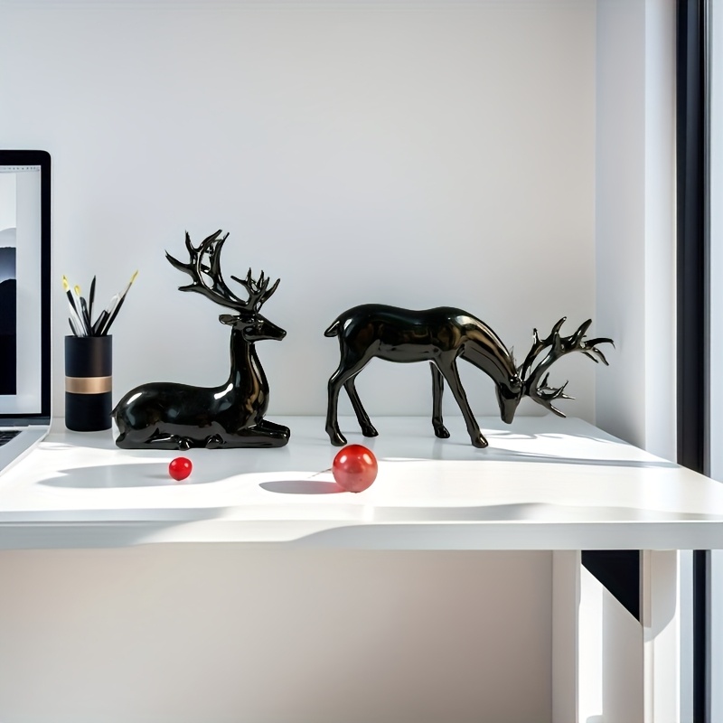 Oh, diese schwarzen Rentier-Figuren sind ja der absolute Hingucker für deine Weihnachtsdekoration! Aus hochwertigem Harz gemacht und mit 20cm Höhe perfekt für Tisch, Regal oder Sideboard.\n\nDas 2er-Set sieht einfach elegant aus - das matte Schwarz passt zu jedem Einrichtungsstil. Ob modern oder klassisch - diese Rentiere machen überall eine gute Figur. Die filigranen Geweihe sind besonders detailreich gearbeitet.\n\nDas Coole: Sie sind nicht nur zu Weihnachten schön, sondern das ganze Jahr über. Stell sie ins Wohnzimmer, Büro oder in die Vitrine - sie sehen immer gut aus.\n\nHarz ist super robust - die Figuren halten ewig und du hast lange Freude daran. Und sie sind standfest, kippen also nicht so leicht um.\n\nWenn du also mal was Anderes als die typische rote Weihnachtsdekoration suchst oder einfach deinem Zuhause einen eleganten Touch geben willst - diese schwarzen Rentiere sind perfekt. Deine Gäste werden begeistert sein!