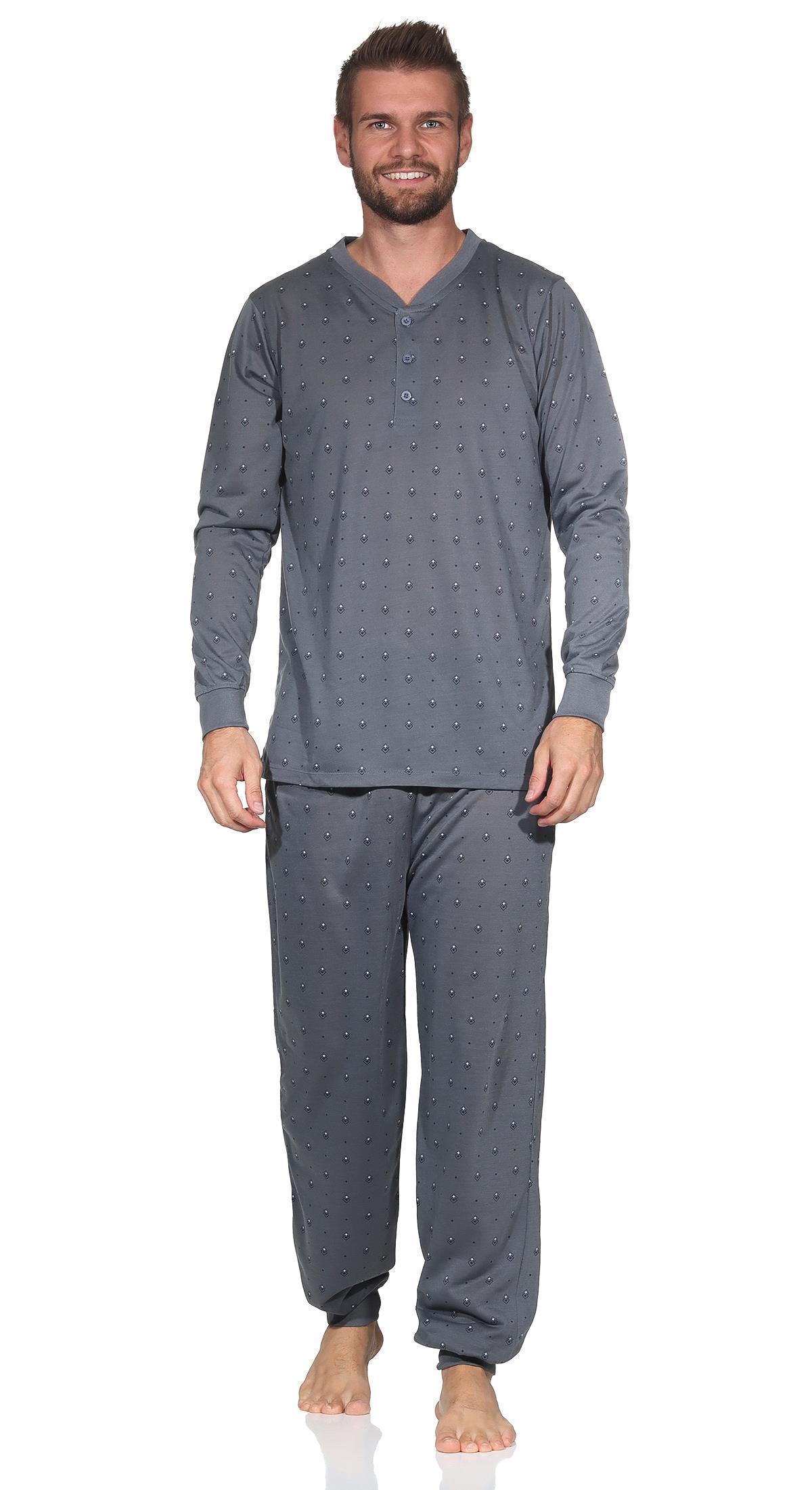 SLEEPHERO Herren Pyjama Set 2-teilig - Baumwolle Langarm Henley