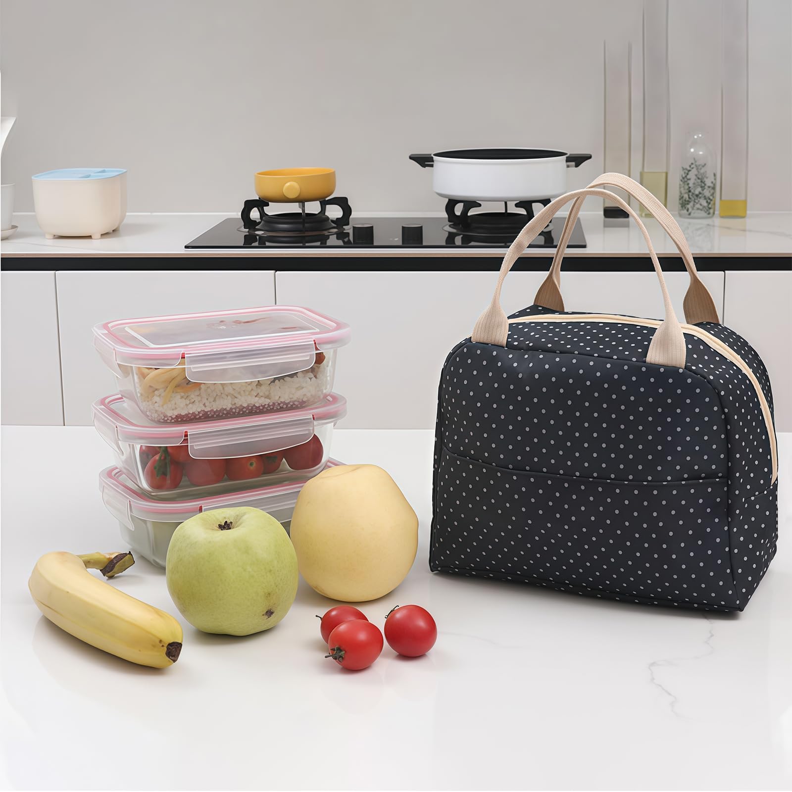 Morgens immer hetzen und kein praktisches Behältnis für dein Mittagessen? Diese AYNKH Lunchtasche im 2er-Set ist deine Rettung! Mit den Maßen 25,5 x 22,5 x 13 cm passt nicht nur deine Lunchbox rein, sondern auch Getränke, Besteck und sogar dein Smartphone finden Platz. Das hochwertige Oxford-Gewebe außen ist total robust und schmutzabweisend - kein Problem, wenn's mal wieder hektisch zugeht. Drinnen wartet eine dicke Schicht aus Baumwolle und Aluminiumfolie, die dein Essen stundenlang warm (oder kalt) hält. Besonders clever: Das spezielle auslaufsichere Design verhindert, dass Suppen oder Soßen auslaufen. Und falls es mal regnet - die wasserdichte Außenschicht hält dein Essen trocken! Der stabile Nylongriff liegt super in der Hand, und wenn du die Tasche nicht brauchst, faltest du sie einfach zusammen - platzsparend und praktisch. Perfekt für: Büro, Schule, Uni, Picknick mit Freunden, Wandertouren oder Camping. Mach dir und deinen Liebsten eine Freude - diese Lunchtaschen sind ein tolles Geschenk für jeden, der sein Essen frisch und praktisch transportieren möchte!