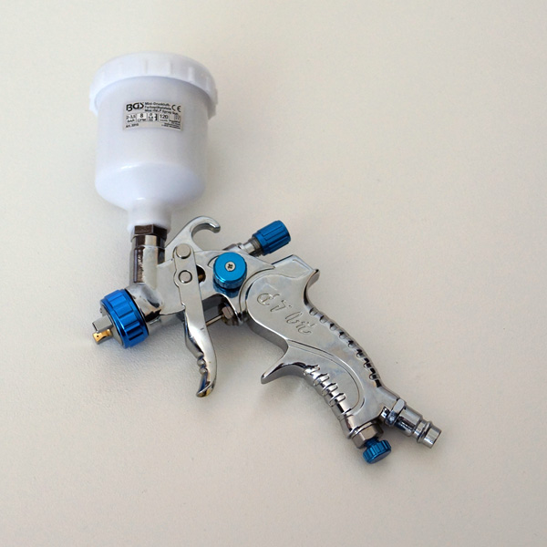 Für alle Hobby-Lackierer und Profis! Dieses BGS Lackierpistolen-Set hat alles, was du brauchst. Zwei HVLP-Pistolen - eine kleine mit 125ml Becher und 0,8mm Düse für feine Arbeiten, und eine große mit 600ml Becher und 1,3mm Düse für großflächige Projekte. Maximal 4,8 bar Druck, aber am besten arbeitest du mit 1,4-3,45 bar. Die Aluminium-Gehäuse sind leicht und robust. Mit dabei: Druckregler mit Manometer, Reinigungsbürste und Multifunktionsschlüssel. Perfekt für Auto- und Maschinenteile. Einfach an den 6,3mm Druckluftanschluss anschließen und los geht's! Die kleine Pistole wiegt nur 230g, die große 490g - liegen super in der Hand. Macht professionelle Lackierergebnisse auch für Heimwerker möglich. Einfach ausprobieren und sich über perfekte Oberflächen freuen!