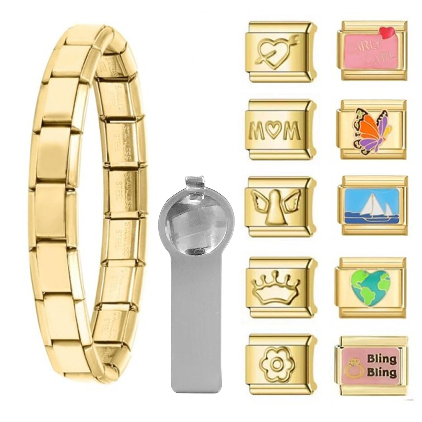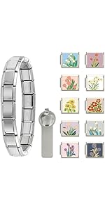 Liebst du individuellen Schmuck, den du selbst gestalten kannst? ✨ Dieses Italian Charm Armband Set von papasgix gibt dir alle Freiheiten, dein persönliches Armband zu kreieren!\n\nWas im Set enthalten ist:\n• 22 verschiedene Charms - alle im Love-Design\n• Starter-Armband - zum sofortigen Loslegen\n• Öffnungswerkzeug - für einfaches Wechseln\n• Größe: 9mm - Standardgröße für Italian Charms\n• Material: Titan-Stahl - silberfarben und rostfrei\n\nWarum Italian Charms so cool sind:\n• Vollständig individualisierbar - dein Style, deine Regeln\n• Einfach zu wechseln - anders mood, anderes Armband\n• Perfekte Passform - für Damen, Herren und Jugendliche\n• Mit anderen Charms kombinierbar - erweiterbar\n• Immer wieder neu gestaltbar - nie langweilig\n\nBesondere Features:\n• Hochwertiger Titan-Stahl - nickel- und bleifrei\n• Leicht zu öffnen und schließen - mit dem Werkzeug\n• Perfekte Größe - nicht zu groß, nicht zu klein\n• Zeitloses Design - passt zu jedem Outfit\n• Ideal für Sammler - kann ständig erweitert werden\n\nSo funktioniert's:\n1. Armband auswählen und öffnen\n2. Charms in gewünschter Reihenfolge anbringen\n3. Armband schließen - fertig!\n4. Bei Lust auf Veränderung: einfach umgestalten\n\nPerfekt für:\n• Schmuckliebhaber, die Abwechslung mögen\n• Als kreatives Geschenk für besondere Anlässe\n• Jugendliche und Erwachsene gleichermaßen\n• Alle, die ihren Schmuck dem Outfit anpassen wollen\n• DIY-Fans und Bastelbegeisterte\n\nMit diesem Set kannst du dein Armband täglich neu erfinden - mal mit allen Charms, mal nur mit einigen, mal in anderer Reihenfolge. So hast du immer genau den Look, der zu dir und deiner Stimmung passt!\n\nEin wunderbares Geschenk für alle, die Individualität und Kreativität lieben. Und das Beste: Du brauchst kein Schmuck-Experte zu sein - das Öffnungswerkzeug macht alles ganz einfach.