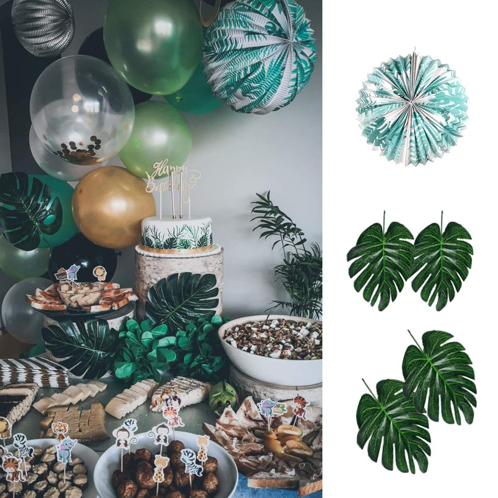 Hawaii Party Deko Set - 24-teiliges Dschungel Deko Paket Mit Papageien & Blättern