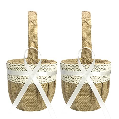 Mache deine Hochzeit zu einem unvergesslichen Märchen! Dieses bezaubernde Set mit 3 Blumenmädchen-Körben ist perfekt für deinen großen Tag. Jeder Korb ist liebevoll mit zarter Spitze und Satin-Bändern verziert und verströmt einen romantischen Vintage-Charme. Aus hochwertigem Sackleinen gefertigt, sind die Körbe nicht nur hübsch sondern auch robust. Mit 12,5cm Durchmesser oben und 23cm Höhe (inkl. Griff) bieten sie genug Platz für Blütenblätter, Konfetti oder kleine Süßigkeiten. Das halbrunde Griffdesign liegt gut in kleinen Händen und ist angenehm zu tragen. Perfekt für den Blumenmädchen-Zug oder als Tischdekoration auf den Gästetischen. Schaffe wunderschöne Fotomomente mit diesen niedlichen Körbchen!