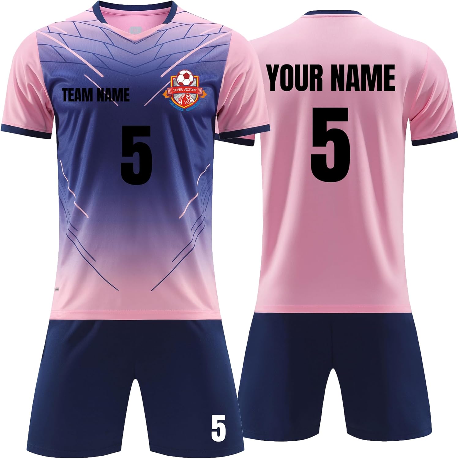 Spiele wie dein Lieblingsstar! Dieses personalisierte Fußball Trikot Set kommt komplett mit Trikot, Shorts und Stutzen - alles in einem Paket. Du kannst deinen eigenen Namen und deine Wunschnummer draufdrucken lassen, oder die deines Lieblingsspielers. Aus atmungsaktivem Polyester, das Schweiß super ableitet und schnell trocknet. Perfekt fürs Training, Spiele oder einfach zum Angeben. Für Kinder und Erwachsene gleichermaßen geeignet. Der Druck ist maschinenwaschbar und verblasst nicht - auch nach häufigem Waschen sieht es noch top aus. Ein super Geschenk für jeden Fußball-Fan! Wähl deine Größe, schick uns deine Wünsche und schon bist du startklar fürs nächste Spiel.