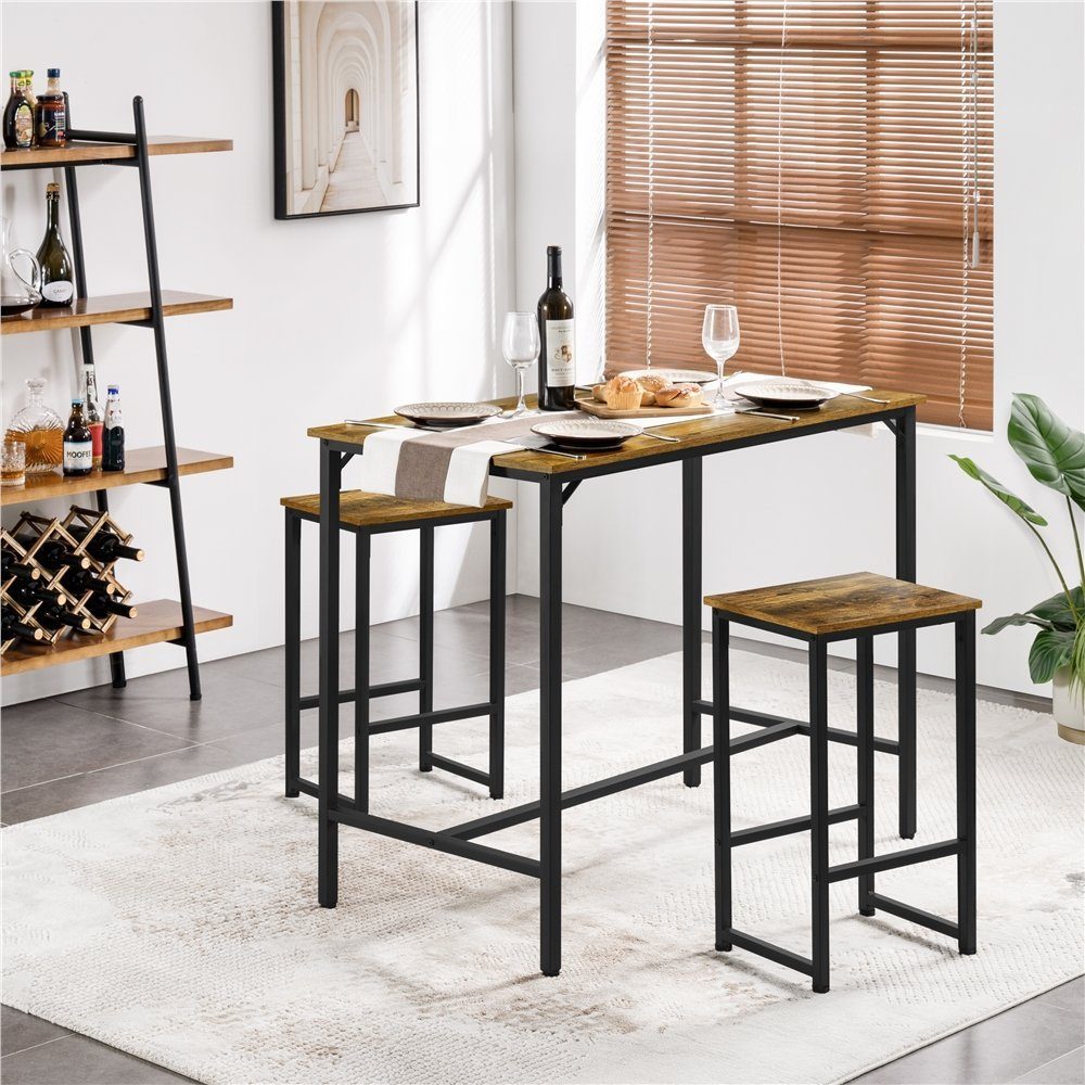 PortoAlegre Hochbartisch Set 3-teilig - Tisch Mit 2 Gepolsterten Stühlen