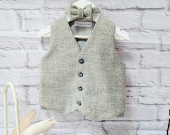 Jungen Westen Set 3-teilig - Tweed Karo Weste Mit Krawatte | Retro Style Für Festliche Anlässe