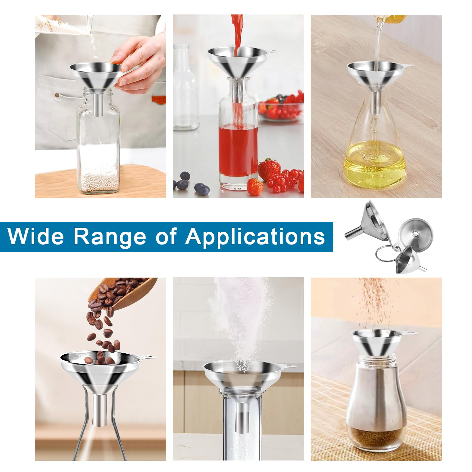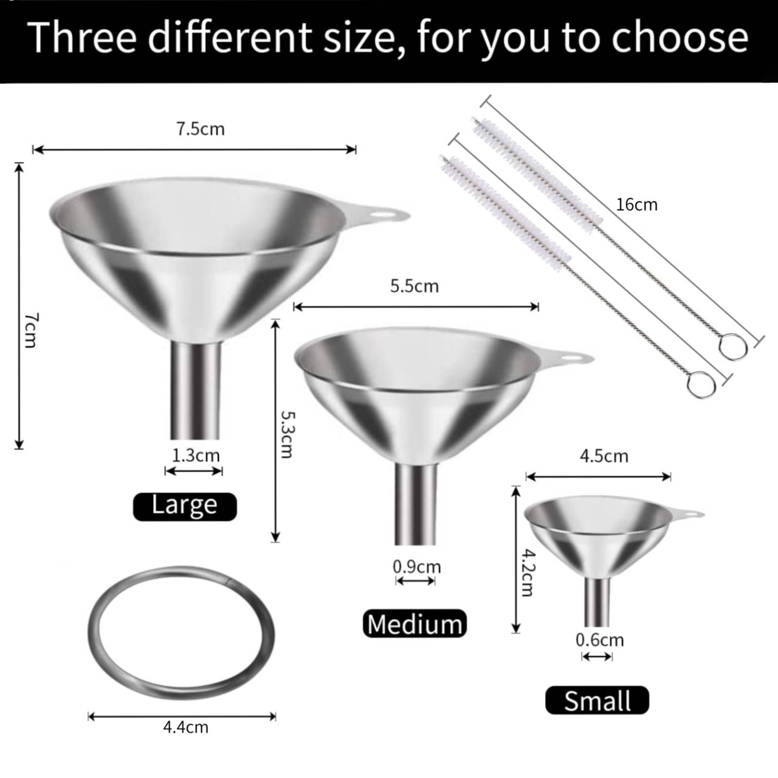 Endlich ordentlich umfüllen! Dieses 3-teilige Edelstahl-Trichter-Set macht das Befüllen von Flaschen zum Kinderspiel. In verschiedenen Größen für Öl, Marmelade, Pulver und mehr. Aus lebensmittelechtem Edelstahl - geruchsneutral und hygienisch! Inklusive praktischer Reinigungsbürste für schnelle Säuberung. Mit Aufhängebögen für platzsparende Lagerung. Rostfrei und spülmaschinengeeignet. Perfekt für Küche, Haushalt, Basteln oder Camping. Nie wieder Verschütten - hol dir dieses praktische Set und mach deine Küchenarbeit einfacher und sauberer!