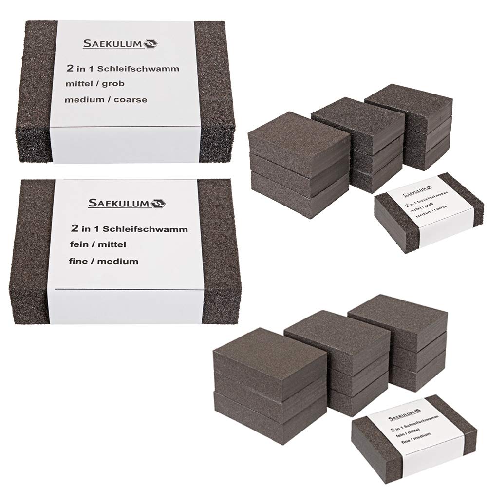 Für alle Heimwerker und Hobby-Handwerker: Dieses Schleifschwamm-Set ist ein echter Alleskönner! 24 Teile mit verschiedenen Körnungen von grob 320 bis superfein 3000 - da ist für jede Arbeit der passende Schwamm dabei.\n\nDie Schwämme haben eine praktische Größe von 75x100 mm und sind deutlich mit der Körnung beschriftet. So findest du immer schnell den Richtigen, ohne lange suchen zu müssen.\n\nWas ich besonders gut finde: Die Vorderseite ist aus Aluminiumoxid mit gleichmäßig verteilten Schleifpartikeln - richtig langlebig und verschleißfest. Die Rückseite hat ein weiches Flocktuch, das anti-rutscht und für stabilen Halt sorgt.\n\nDer mittlere Schwammteil ist superflexibel und passt sich auch gewölbten Flächen super an. Verstopft nicht so schnell und gibt ein gleichmäßiges Schleifergebnis.\n\nEinsatzbar für so ziemlich alles: Holz, Metall, Auto-Lack, Kunststoff, Keramik... Einfach ein Must-Have für jede Werkstatt! Auch für Nassschleifen geeignet.