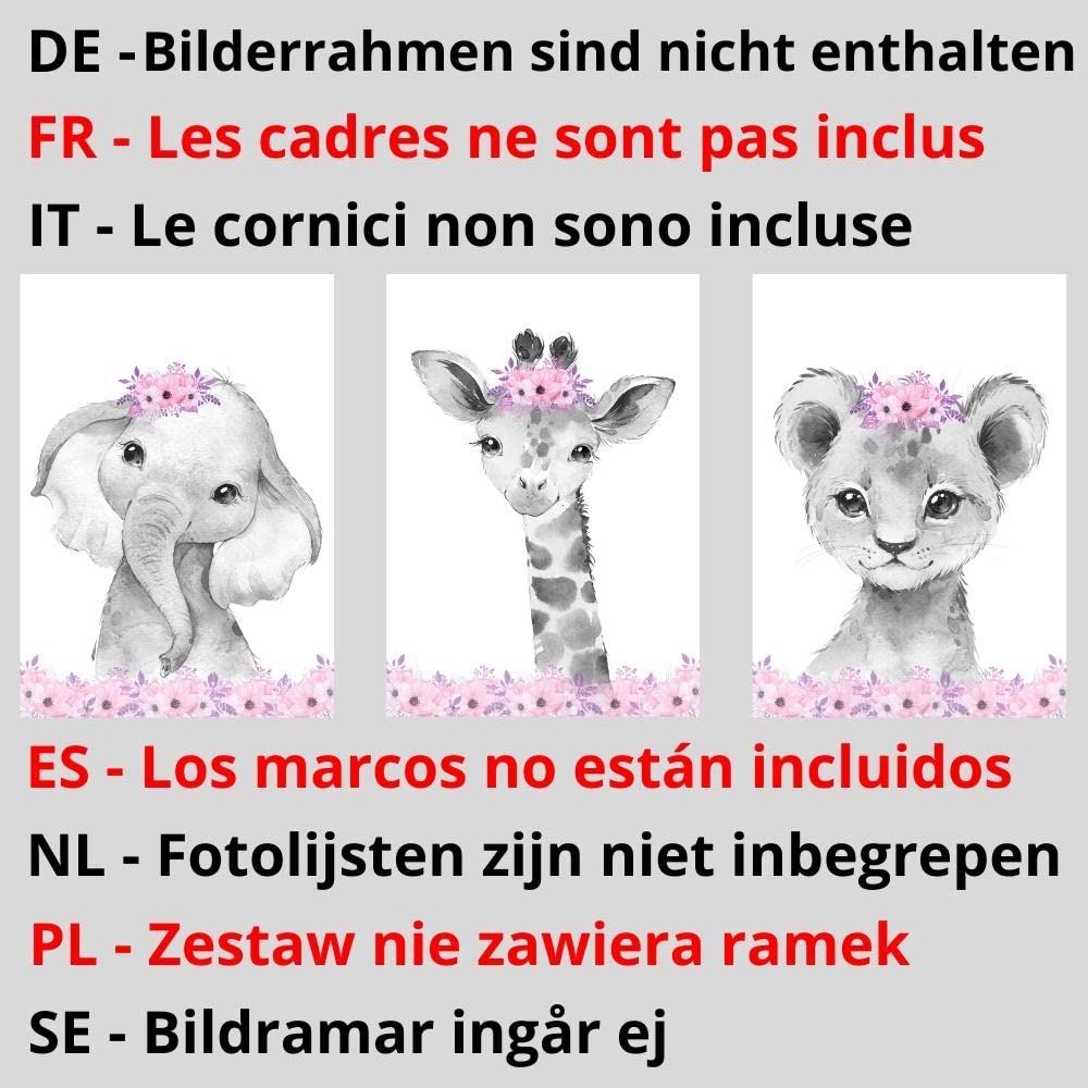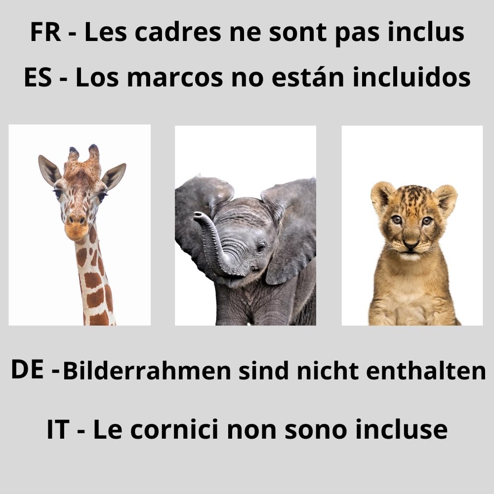 Eviepops Safari Tier Drucke Set - 3er Set Elefant Giraffe Löwe Für Kinderzimmer Deko