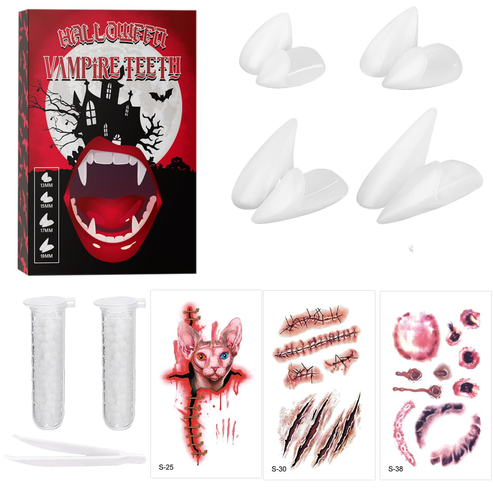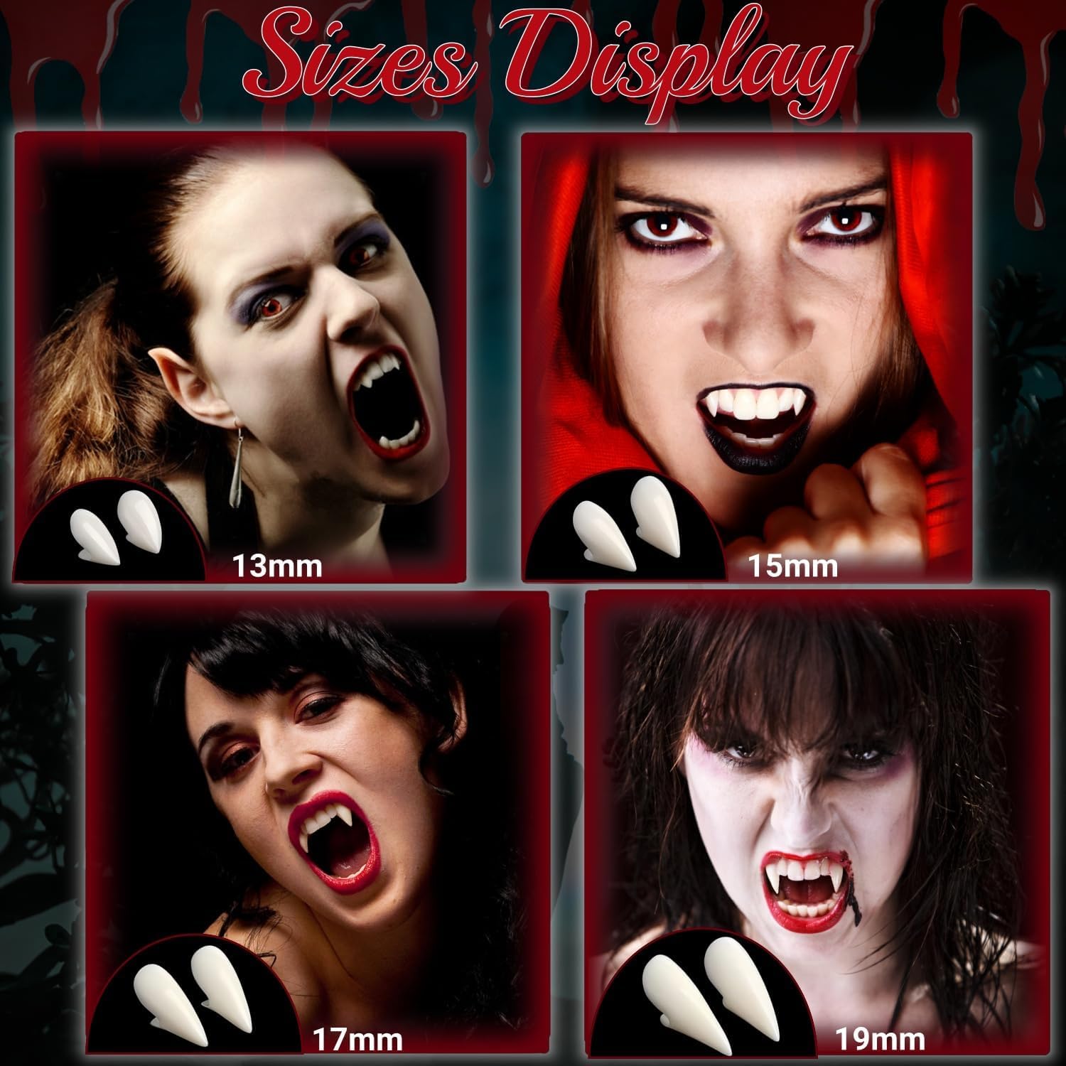 Vampir Zähne Set - 4 Paar Mit Kleber Für Halloween & Cosplay | Verschiedene Größen