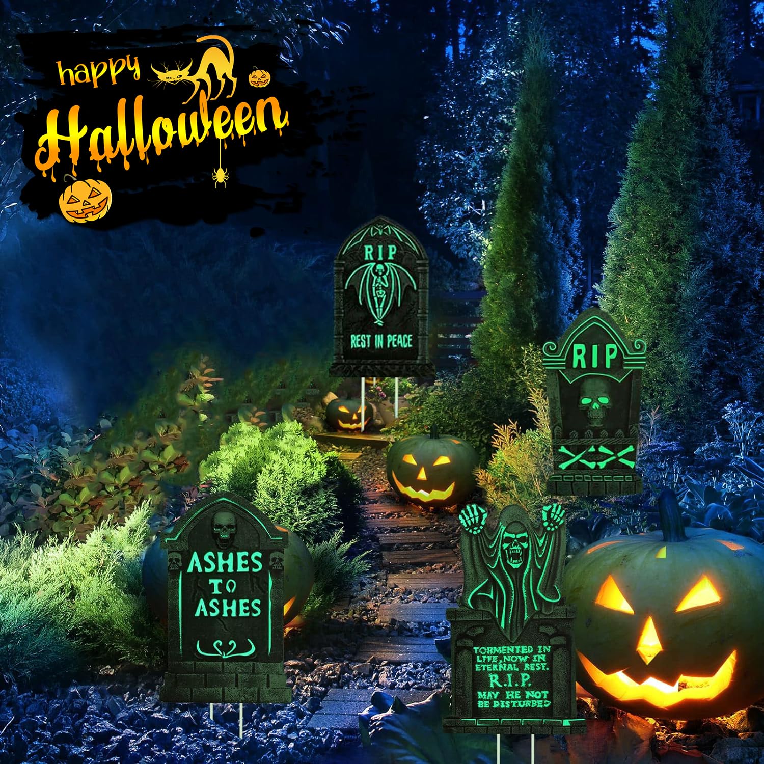 Halloween Grabstein Set 4 Stück - Wetterfeste Friedhofs Deko 43cm