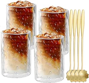 Echt stylische Gläser für deine Lieblingsgetränke! Dieses 4er-Set von Nizirioo überzeugt mit einem tollen Vintage-Design und den charakteristischen Riffeln, die nicht nur gut aussehen, sondern auch super in der Hand liegen. Jedes Glas fasst volle 500ml - perfekt für große Portionen Eiskaffee, Eistee, Cocktails oder Bier. Aus hochwertigem Borosilikatglas gefertigt, sind die Gläser robust, spülmaschinengeeignet und halten Temperaturen von -20° bis 150°C stand. Im Lieferumfang sind neben den 4 Gläsern auch 4 Strohhalme und 2 Reinigungsbürsten enthalten - alles, was du für den perfekten Drink brauchst. Die Gläser sind vielseitig einsetzbar: Ob für deinen Morgenkaffee, abendlichen Whiskey, erfrischenden Cocktail oder das Bier beim Grillen - sie machen immer eine gute Figur. Mit den Maßen 7x12,5 cm passen sie gut in die Hand und sehen auf jedem Tisch elegant aus. Perfekt für den eigenen Gebrauch oder als Geschenk für Freunde, die stylisches Geschirr lieben. Einfach auspacken, befüllen und genießen - so einfach kann Genuss sein!