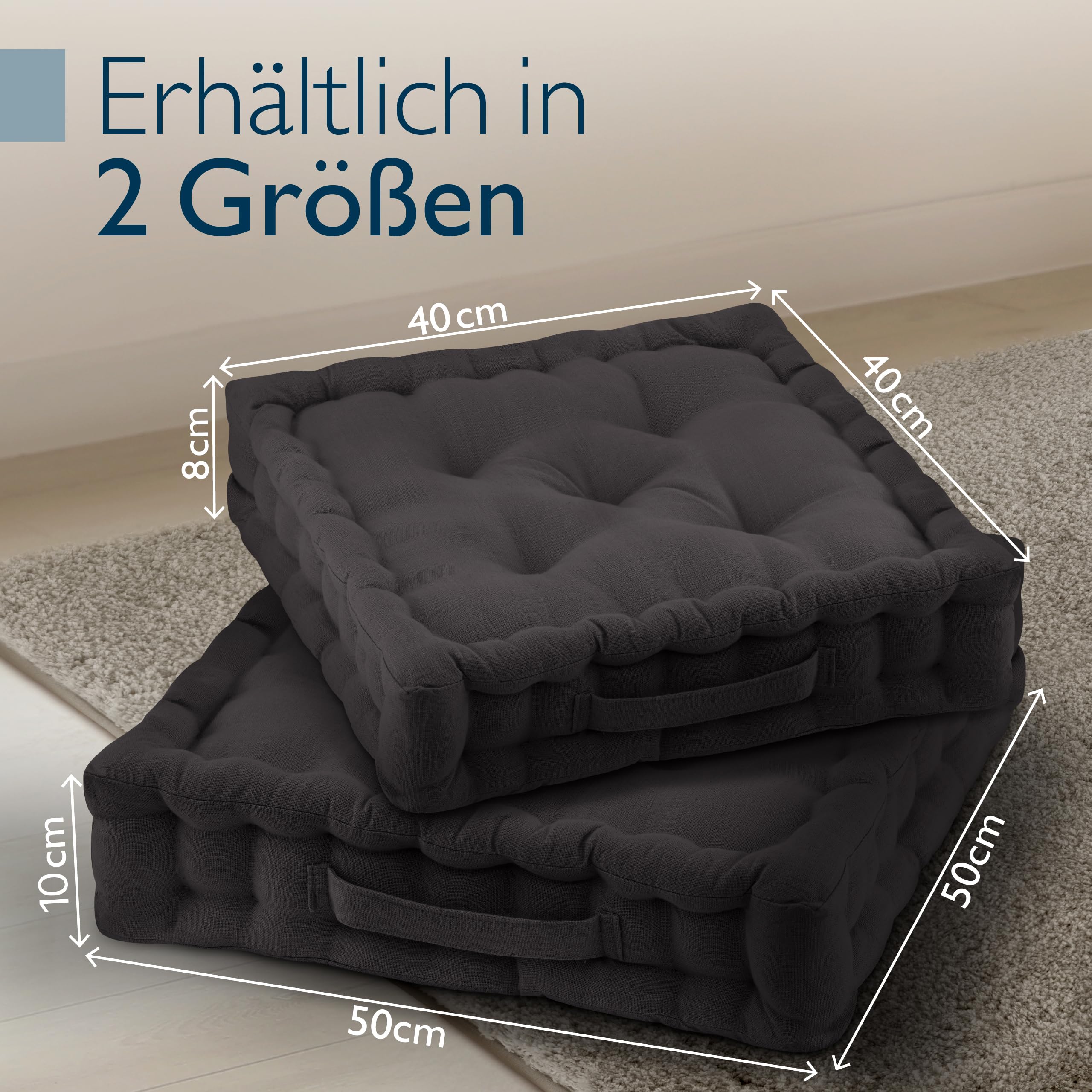 Beautissu Bodenkissen 4er Set | 40x40cm 8cm Dick | 100% Baumwolle