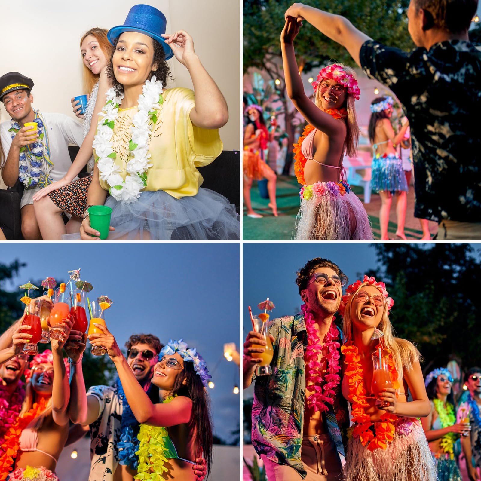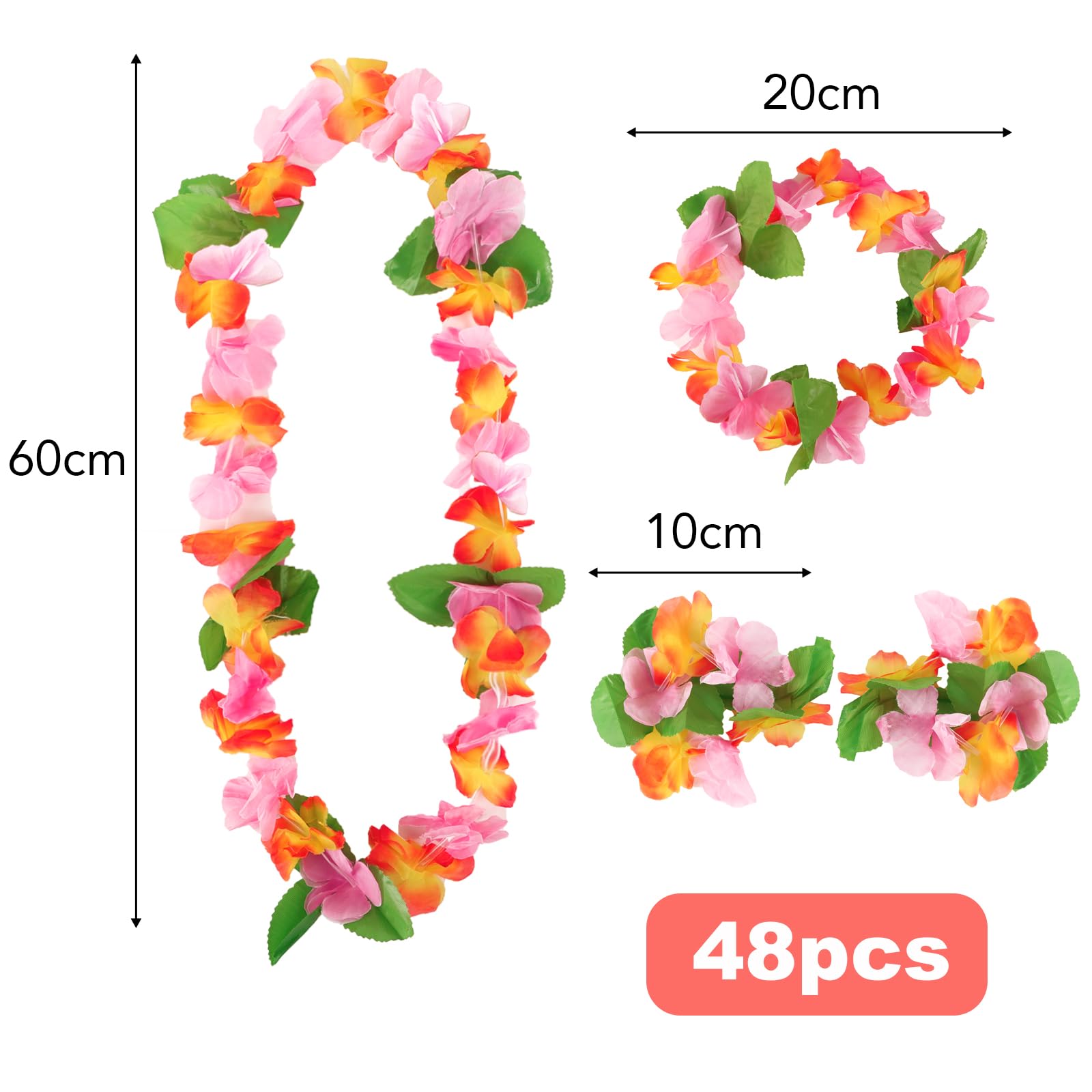 BETESSIN Hawaii Girlanden Set - 48-teilig Mit Blumenkränzen, Ketten & Armbändern