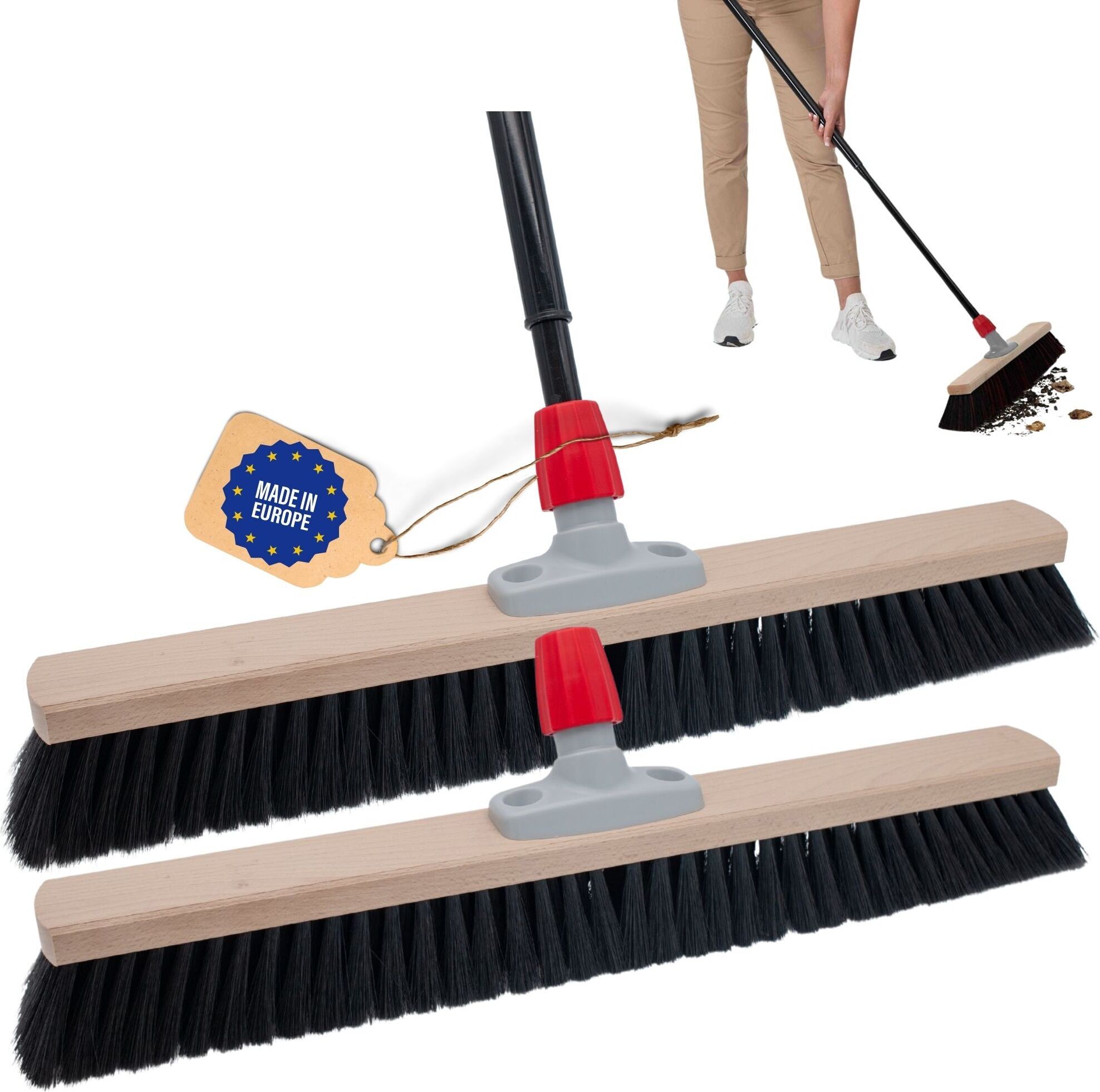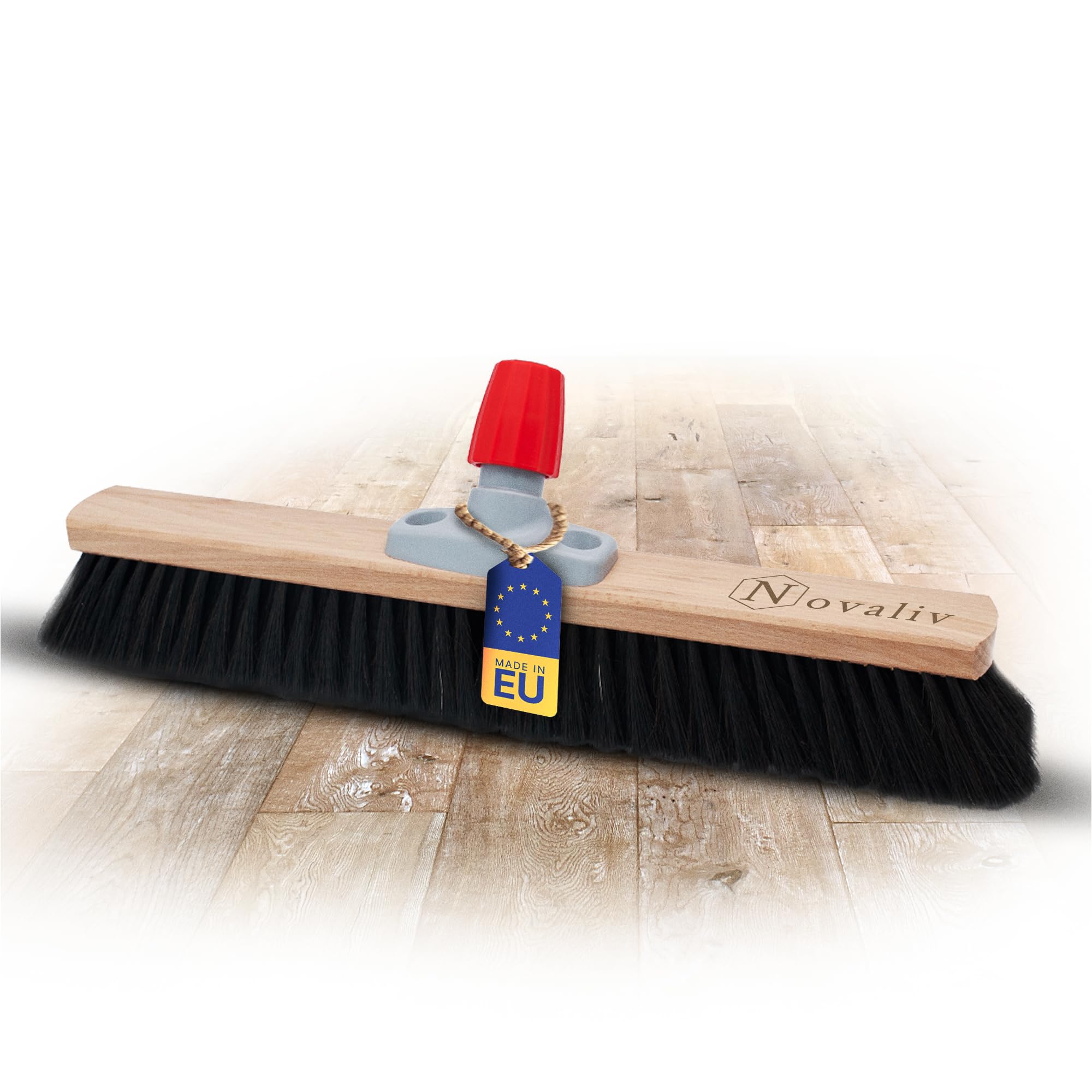 Hey, wer kennt das nicht - staubige Böden, aber kein passender Besen zur Hand? Dieses 4er Set von Novaliv ist die perfekte Lösung für alle, die Wert auf saubere Böden legen! Die Besen bestehen aus einer weichen Rosshaarmischung, die super schonend zu allen glatten Oberflächen ist. Egal ob Parkett, Laminat oder Fliesen - keine Kratzer, nur saubere Ergebnisse!\n\nDer Holzstiel aus unlackiertem Buchenholz liegt super in der Hand und ist mit 130 cm Länge ideal für alle Körpergrößen. Das integrierte Aufhängeloch ist praktisch für die platzsparende Aufbewahrung. Der Stielhalter aus Kunststoff ist verstellbar und passt Stiele von 20-26 mm Durchmesser - super flexibel!\n\nMit einer Kehrbreite von 44 cm und 7 cm Tiefe macht das Kehren richtig Spaß und geht schnell von der Hand. Made in Germany - Qualität, die man sieht und spürt. Perfekt für die tägliche Reinigung in Wohnung, Büro oder Praxis. Endlich Schluss mit herumfliegenden Staubflusen und unzureichenden Kehrhilfen!