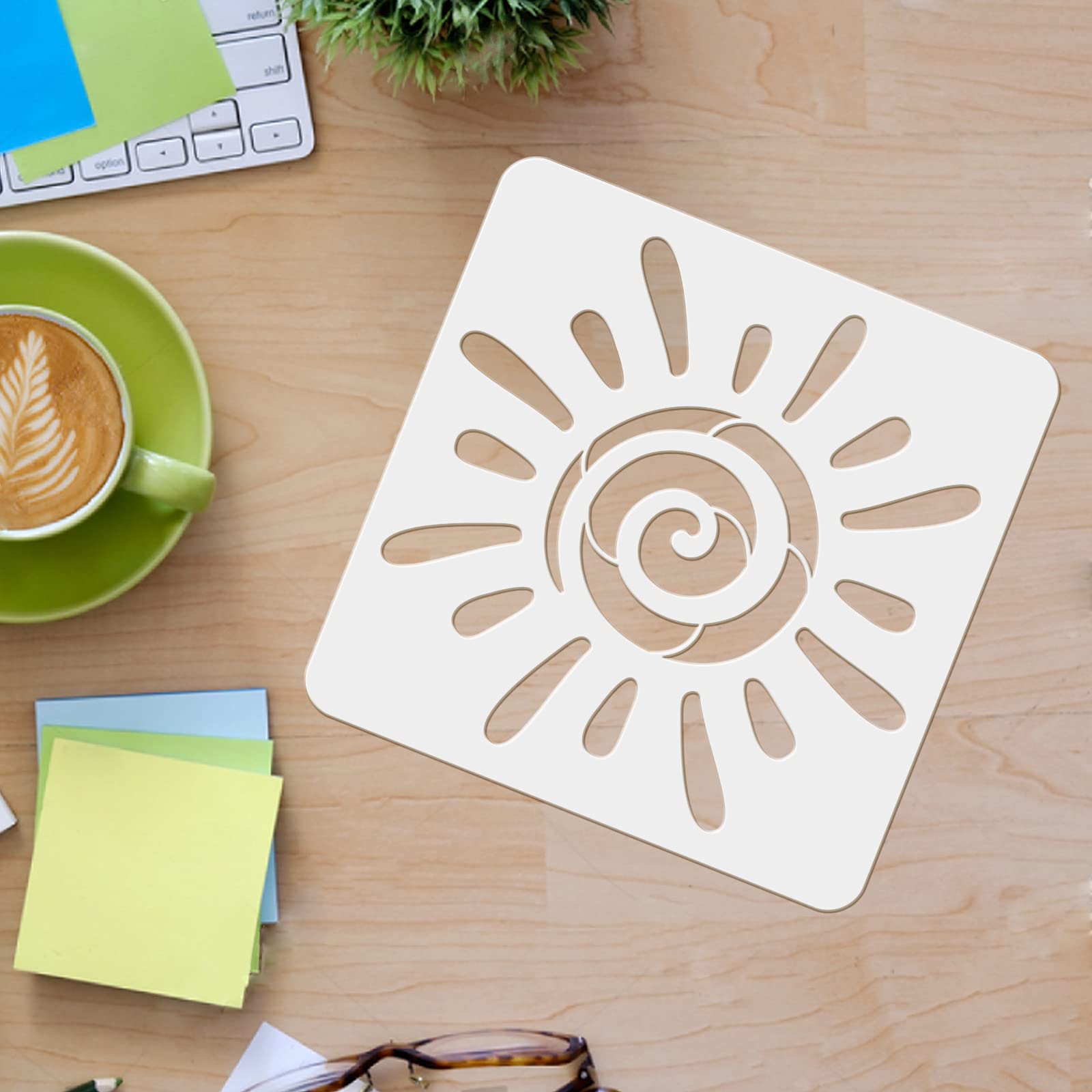 Bringen Sie Sonnenschein in Ihr Zuhause mit diesem umfangreichen Sonnen-Schablonen-Set von FINGERINSPIRE! Enthalten sind 5 Sonnen-Schablonen in verschiedenen Größen: 10x10cm, 15x15cm, 20x20cm, 25x25cm und 30x30cm, plus ein praktischer Kunststoff-Pinsel. Hergestellt aus hochwertigem PET-Kunststoff mit glatten Kanten und abgerundeten Ecken. Flexibel, langlebig und nach dem Malen einfach mit Wasser oder feuchtem Tuch zu reinigen. Einfach die Schablone auf der gewünschten Oberfläche fixieren und mit Pinsel, Kreide, Aquarellstiften oder sogar Sprühfarbe gestalten. Perfekt für Wände, Möbel, Holz, Türen, Fenster, Stoff und viele andere Oberflächen. Ideal für Kinderzimmer, Wohnzimmer, DIY-Projekte oder Fantasie-Themen-Dekorationen. Ob Sie eine einzelne Sonne als Akzent setzen oder ein ganzes Sonnensystem gestalten möchten - mit den verschiedenen Größen sind Ihrer Kreativität keine Grenzen gesetzt. Das Set macht nicht nur Spaß, sondern fördert auch die künstlerische Entwicklung und bringt Farbe in Ihr Leben. Einfach zu verwenden und wiederverwendbar für unzählige kreative Projekte!