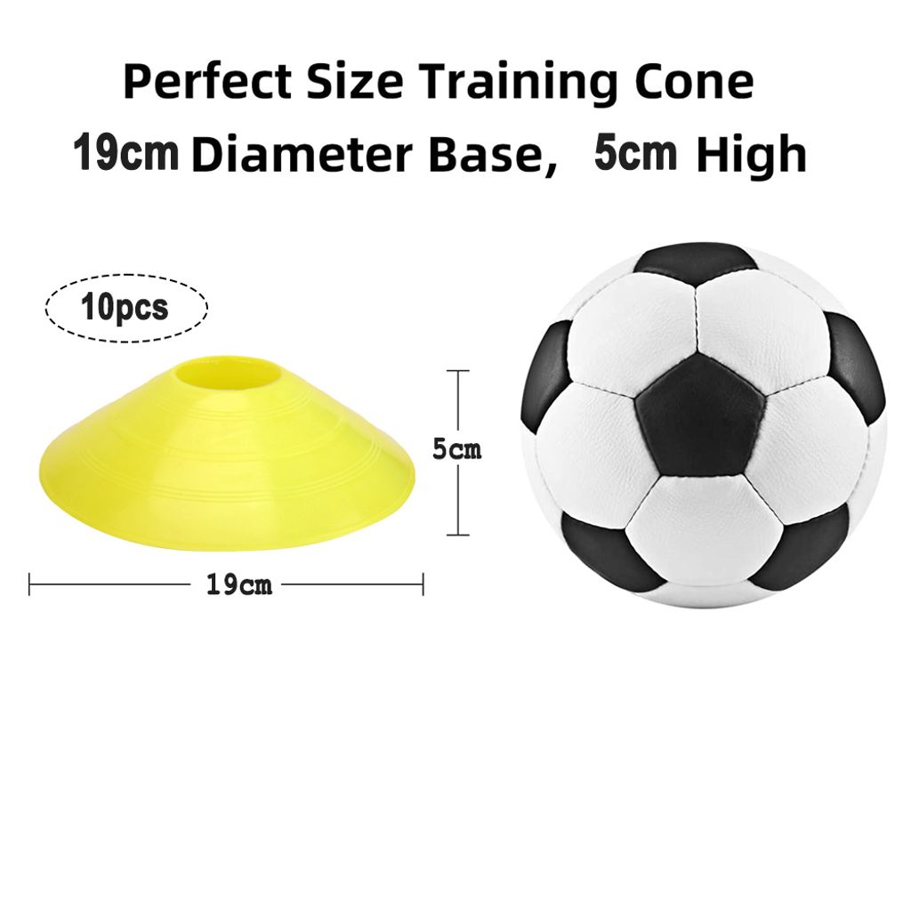 Perfektes Training mit diesen vielseitigen Markierungshütchen! Das Set enthält 50 robuste Hütchen in 5 knalligen Farben - je 10 in Rot, Orange, Gelb, Grün und Blau. Aus hochwertigem PE-Material gefertigt, sind sie besonders langlebig und verformen sich nicht. Mit 20cm Durchmesser und 5cm Höhe gut sichtbar auf jedem Sportplatz. Ideal für Fußball-, Tennis-, Hockey- oder Leichtathletiktraining. Die praktische Aufbewahrungstasche mit Halter macht Transport und Lagerung super einfach. Auch für Agility-Training mit Hunden oder als Verkehrsabsperrung geeignet. Die hellen Farben sind auch bei schlechtem Licht gut zu erkennen. Rutschfester Stand auch auf nassen Böden. Ein unverzichtbares Equipment für Trainer, Vereine und Sportbegeisterte. Mach dein Training professioneller und organisiert mit diesen qualitativ hochwertigen Markierungshütchen!