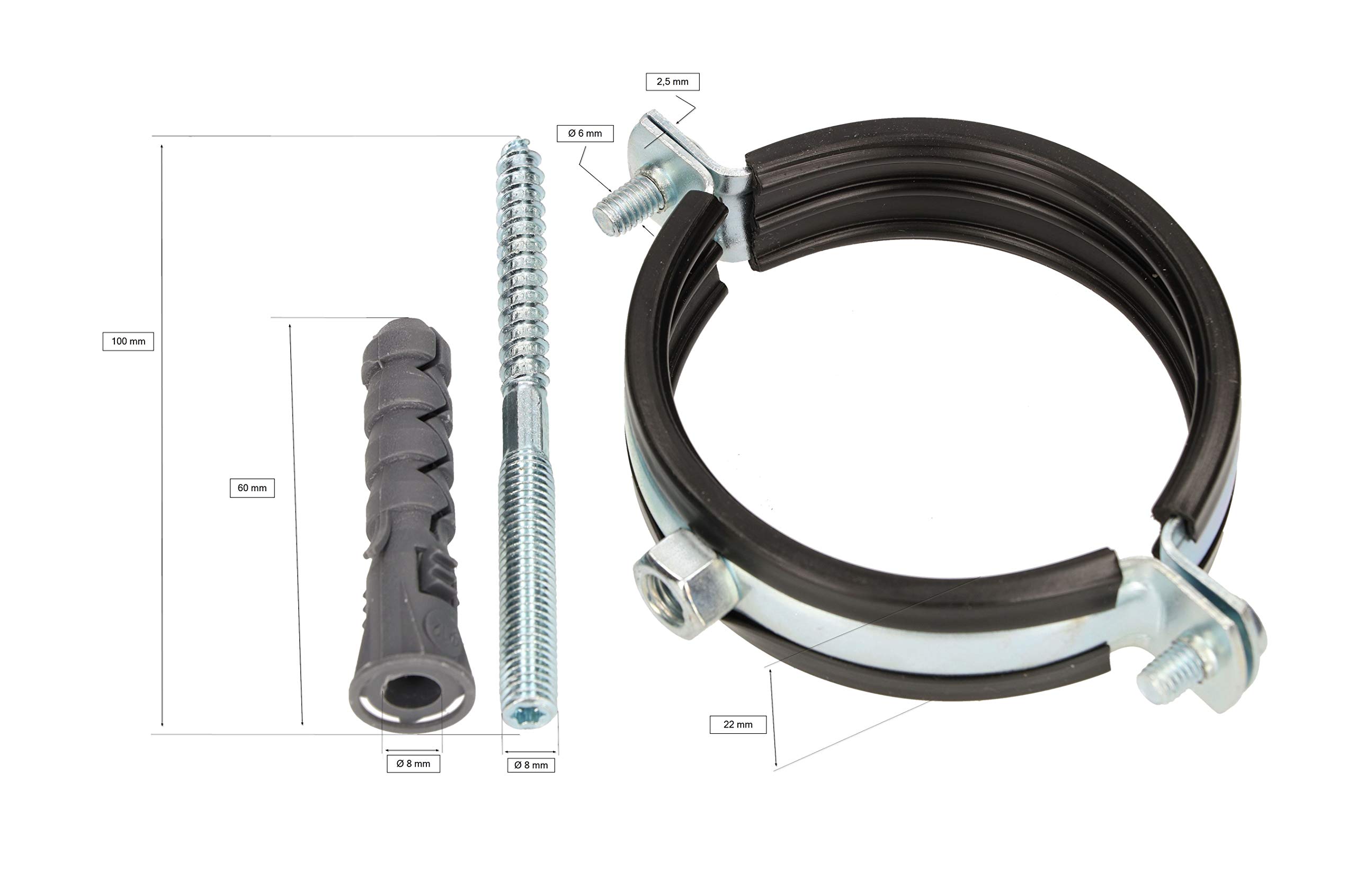 Baust du gerade eine Wasserleitung oder Lüftungsrohre auf? Das ZMDMAH Rohrschellen Set hat alles was du brauchst! 12 Edelstahl-Rohrschellen (50mm), 12 Stockschrauben, 12 Dübel und sogar ein Paar Arbeitshandschuhe sind im Lieferumfang - wirklich komplett! Aus hochwertigem Edelstahl gefertigt, rosten die Schellen nicht und halten auch feuchten Umgebungen stand.