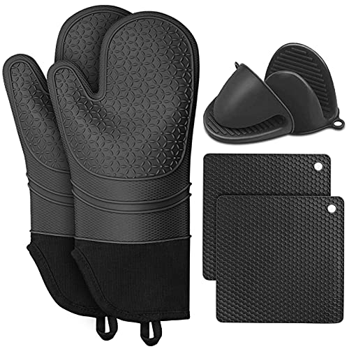 QWORK Silikon Ofenhandschuhe Set - 6-teilig Mit Topflappen & Mini-Handschuhen