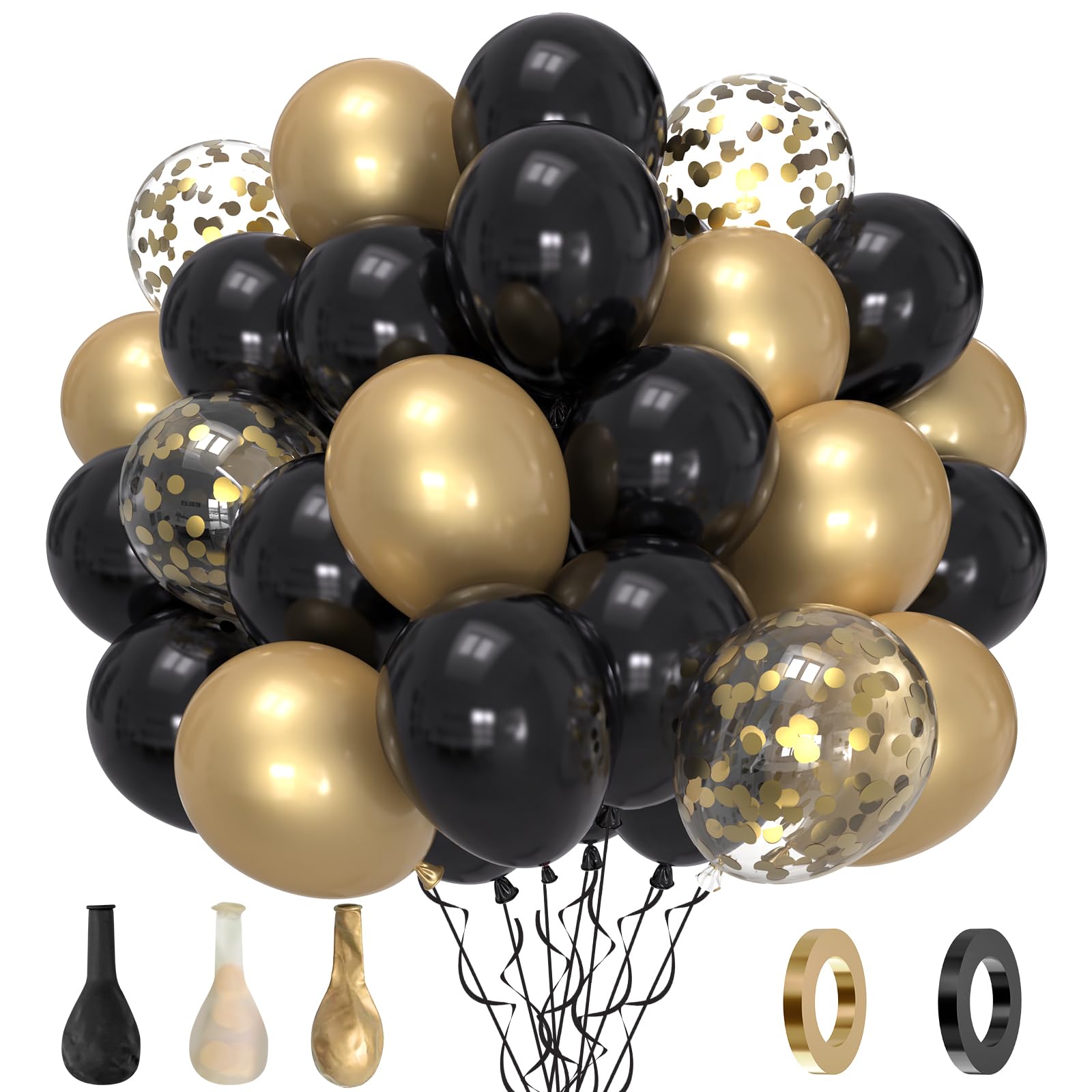 Schwarz Gold Luftballons Set - 60 Stück Hochzeitsdeko Mit Konfetti Ballons