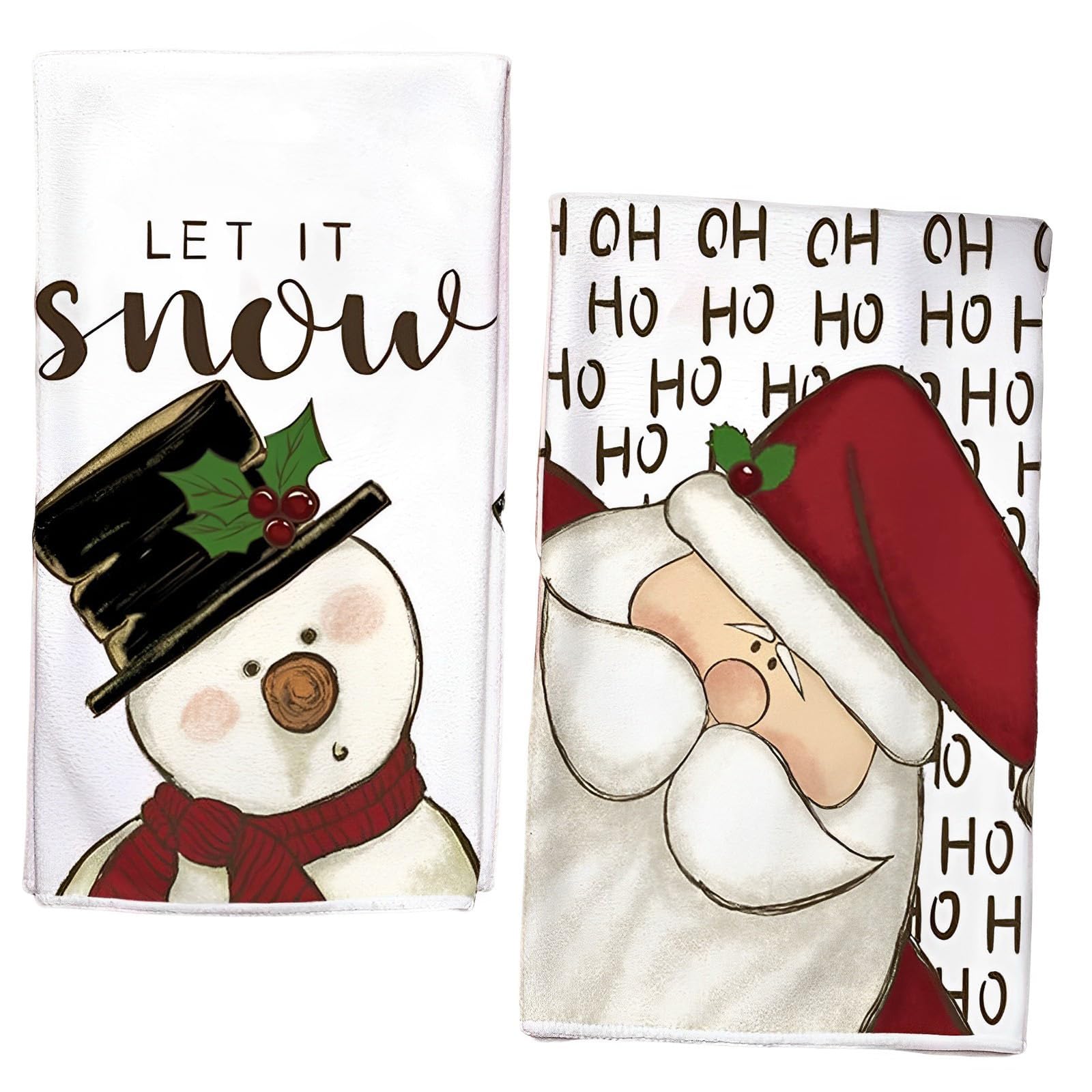 Weihnachts Geschirrtücher 2er Set 60x40cm | Lustige Küchendeko Mit Schneemann & Weihnachtsmann