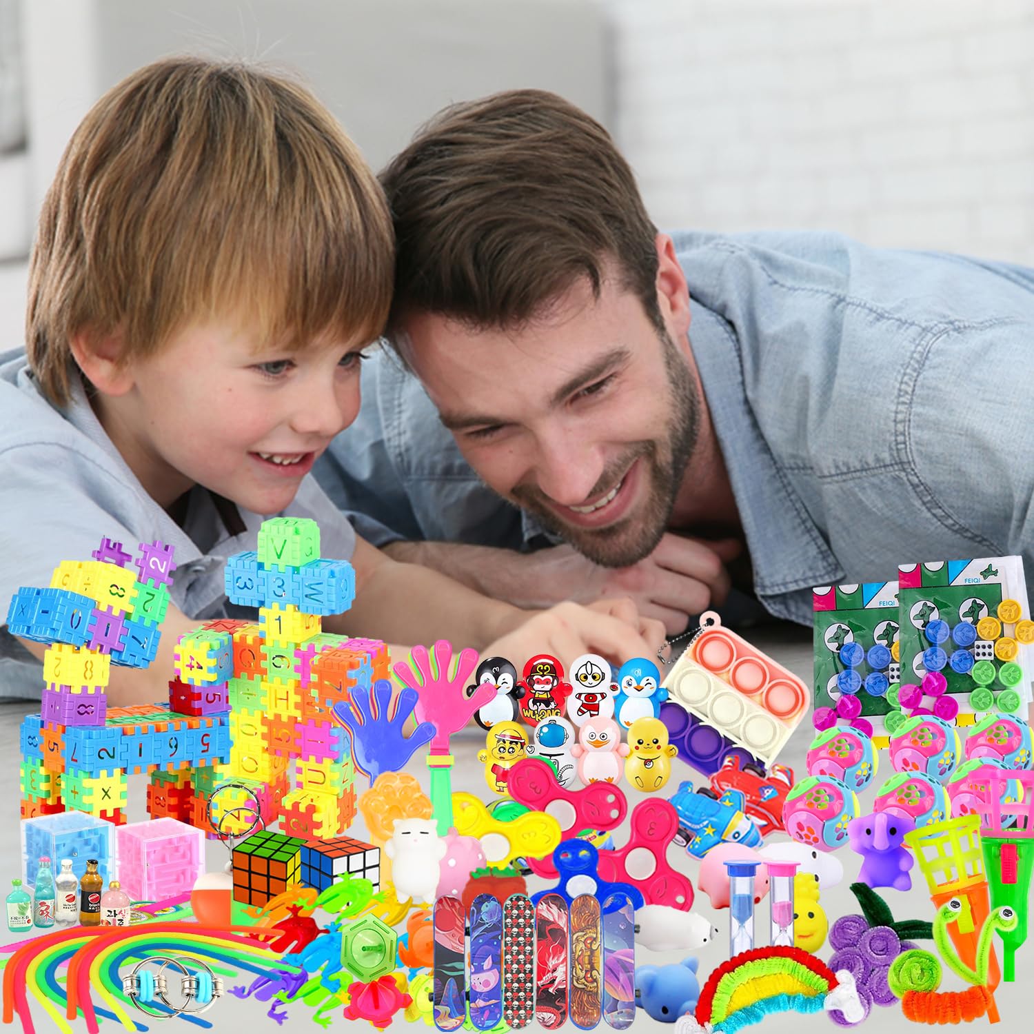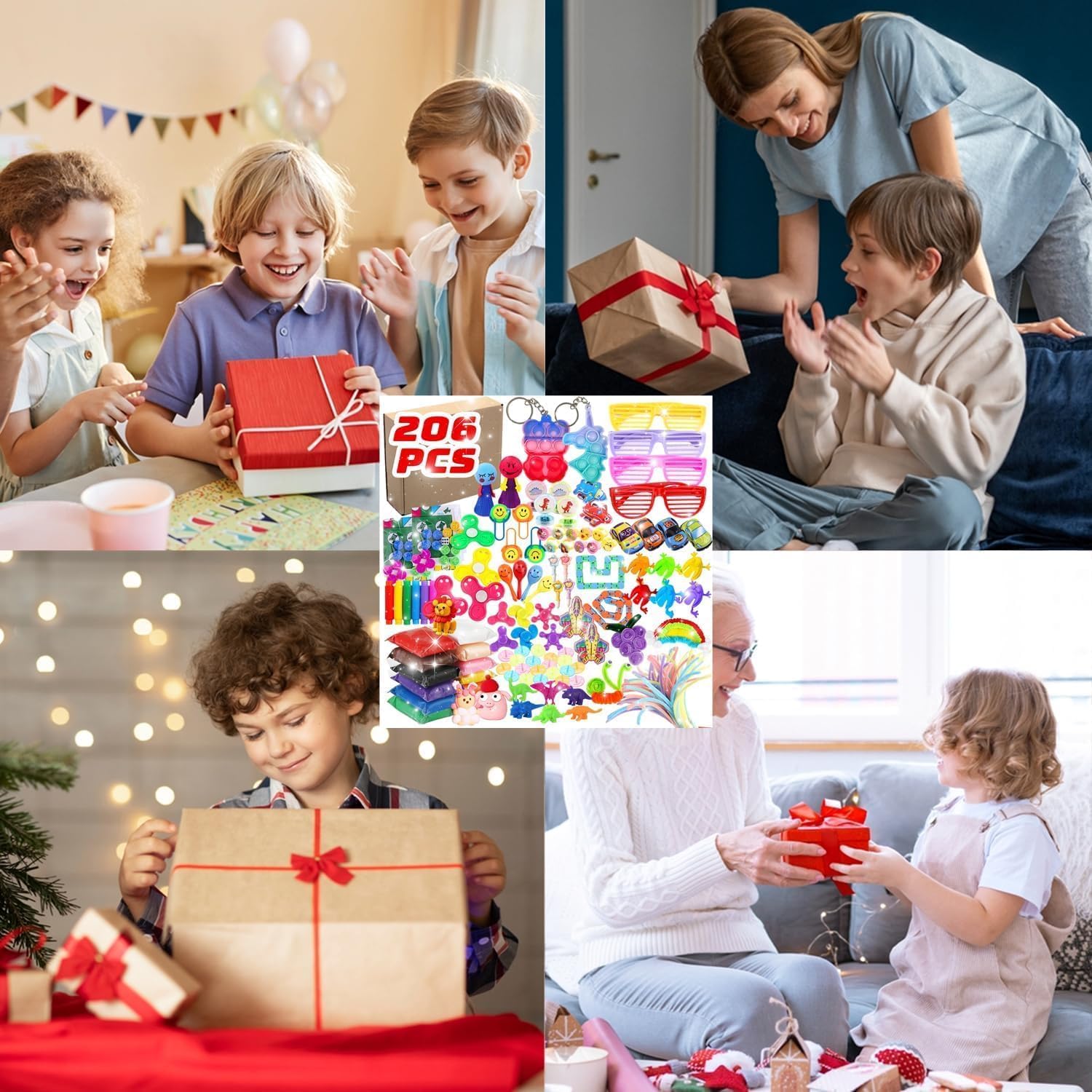 Das ultimative Mitgebsel-Set für den perfekten Kindergeburtstag! 62 bunte Spielzeuge in einem Set - da ist für jedes Kind etwas dabei. Enthalten sind: 8 Tier-Pullback-Autos, 12 Pop-Armbänder, 5 Finger-Skateboards, 6 Pullback-Flugzeuge, 4 Mundpfeifen, 4 Regenbogen-Kreise, 5 Spinner, 5 klebrige Hände, 7 Squishies und 6 Tumbler-Spielzeuge. Alle in zufälligen Farben - eine tolle Überraschung für die kleinen Gäste! Perfekt für Goodie Bags, Pinata-Füller, Schatzkisten oder als Belohnungssystem im Klassenzimmer. Aus ungiftigem Silikon und Kunststoff - absolut sicher für Kinder. Ideal nicht nur für Geburtstage, sondern auch für Halloween, Weihnachten, Ostern oder Karneval. Ein super Ersatz für Süßigkeiten! Einfach verteilen und staunen, wie viel Freude diese kleinen Spielzeuge bereiten. Spart Zeit und Nerven bei der Partyvorbereitung - alles in einem Set!