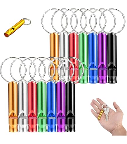 Sicherheit für unterwegs! Dieses 9er Set Trillerpfeifen ist perfekt für Outdoor-Abenteuer. Aus Aluminiumlegierung - robust und langlebig. Nur 55x15x8mm klein - passt in jede Tasche. In Gold, Silber und Blau - für jeden Geschmack was dabei! Extrem laut - im Notfall wirst du garantiert gehört. Ideal für Camping, Wandern, Jagd, Hundetraining oder als Schiedsrichterpfeife. Mit Schlüsselband - immer griffbereit an Rucksack oder Gürtel. Ein Must-Have für Survival-Ausrüstung oder Sporttasche. Ob im Gebirge, Wald oder auf dem Wasser - mit diesen Pfeifen bist du immer in der Lage, Hilfe zu rufen. Hol dir das Set und sei vorbereitet - Sicherheit geht vor!