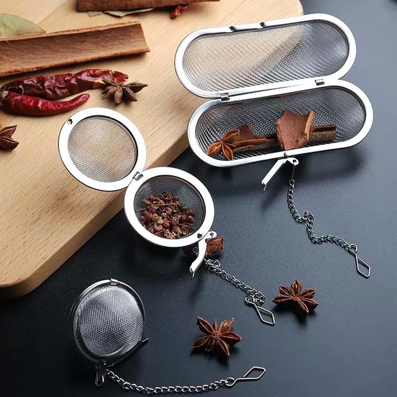 3-teiliges Teeei Set Aus Edelstahl - Teesiebe Für Losen Tee Und Gewürze