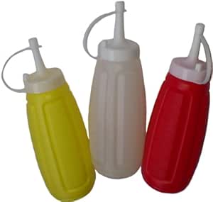 Schluss mit klebrigen Fingern und vollgesauten Kühlschränken! Unser 6er-Set Saucenflaschen (je 450ml) in knalligen Farben (Rot, Gelb, Weiß) bringt Ordnung in deine Küche. Aus 100% lebensmittelechtem Kunststoff - absolut sicher für alle deine Saucen, Dressings und Öle. Der Schraubdeckel schließt so dicht, dass nix ausläuft - egal ob im Kühlschrank, beim Transport oder auf der Grillparty! Die Flaschen sind super weich und flexibel, dosieren punktgenau ohne Kleckern. Perfekt also für Salatdressing, Ketchup, Mayo, Öl, Sirup oder sogar flüssigen Teig! Die große Öffnung macht Befüllen und Reinigen zum Kinderspiel - spülmaschinenfest natürlich. Ob in der Küche, beim BBQ oder Picknick - diese Flaschen sind echte Alleskönner! Endlich siehst du auf einen Blick, was wo drin ist und hast immer die richtige Menge parat. Mach deine Küche zur Profi-Zone - ordentlich, sauber und mega praktisch!