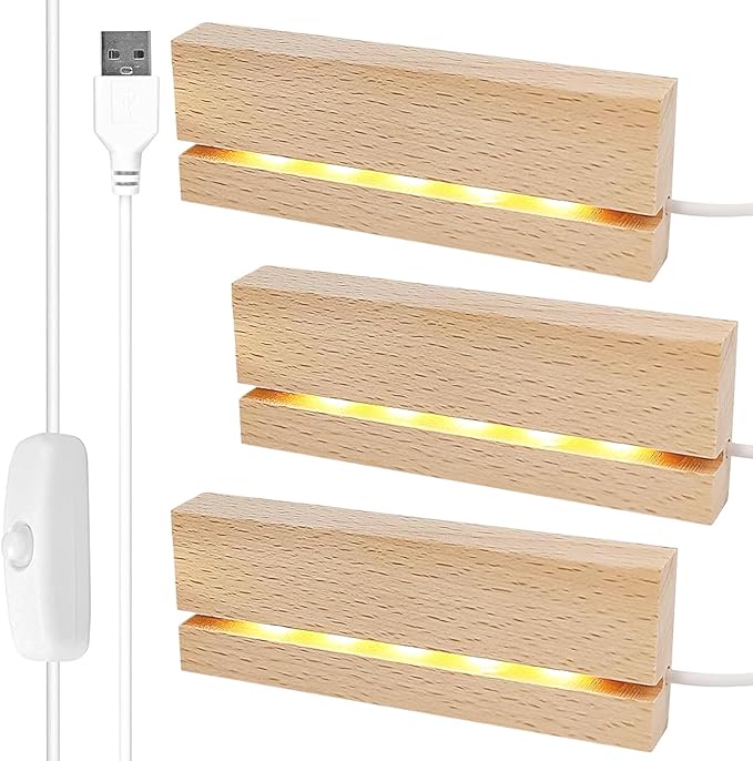 Lass deine Deko-Stücke strahlen! Dieses Set mit 4 LED-Holzsockeln in zwei Größen (8x8cm und 10x10cm) bringt deine Kristallkugeln, Schmuckstücke und Kunstwerke perfekt zur Geltung.