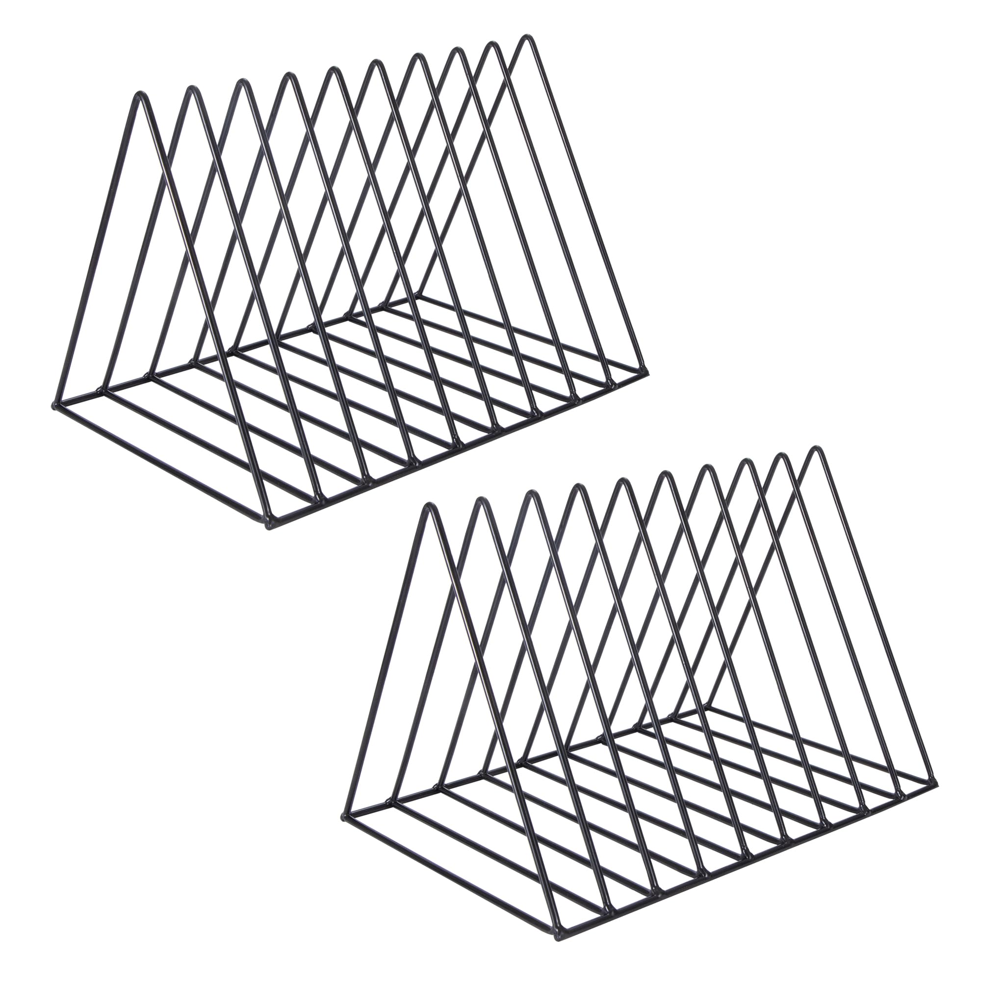 Schluss mit Chaos auf dem Schreibtisch! Der Jesustree Buch-Organizer aus Metall bringt Ordnung in dein Zuhause oder Büro. Mit 9 praktischen Fächern hast du Platz für Bücher, Zeitschriften, Magazine, Schallplatten, Dokumente und sogar Fotoalben. Das dreieckige Design sieht nicht nur modern und clean aus, sondern steht auch super stabil. Hergestellt aus robustem Metalldraht mit einer hochwertigen, rostfreien Beschichtung, hält der Organizer lange was aus – und das ganz ohne komplizierte Montage. Einfach hinstellen und losräumen! Perfekt für den Schreibtisch, Couchtisch oder das Regal. Ob im Homeoffice, im Wartezimmer oder im Wohnzimmer: Mit diesem Organizer bleibt alles griffbereit und sieht dabei noch richtig gut aus. Das Set enthält zwei Organizer – ideal zum Verschenken oder für mehrere Räume. Endlich mehr Übersicht und Stil auf deinem Desktop!