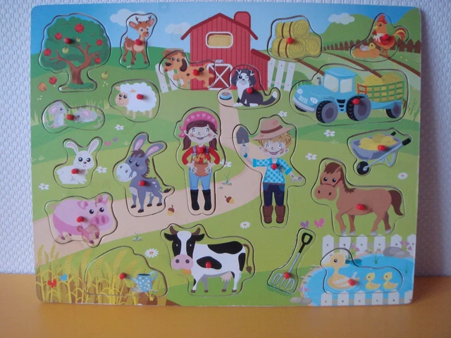 Spielerisch lernen mit diesen bunten Holz-Puzzles! Das 3er-Set enthält Puzzles zu Buchstaben (26 Teile), Bauernhof (9 Teile) und Verkehr (8 Teile) - jede Menge Abwechslung für kleine Entdecker. Aus robustem Vollholz gefertigt, halten die Puzzles auch wildere Spielstunden aus. Die freundlichen Farben und kindgerechten Motive machen Lust aufs Puzzeln und fördern dabei Tastsinn, Motorik und Hand-Auge-Koordination. Perfekt für Kinder im Kindergartenalter - ob alleine oder mit Eltern. Ein tolles Mitbringsel oder Geschenk für Geburtstage, das nicht nur Spaß macht, sondern auch pädagogisch wertvoll ist. Damit wird Lernen zum Spiel!