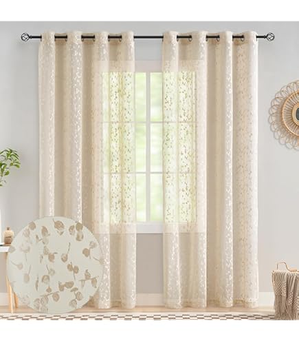 Verwandle dein Zuhause in eine gemütliche Oase! Diese wunderschönen Spitzenvorhänge im 2er Set mit zartem Zweige-Muster bringen natürlichen Charme in deine Räume. In creme Farbe und halbtransparent - filtern das Sonnenlicht perfekt.