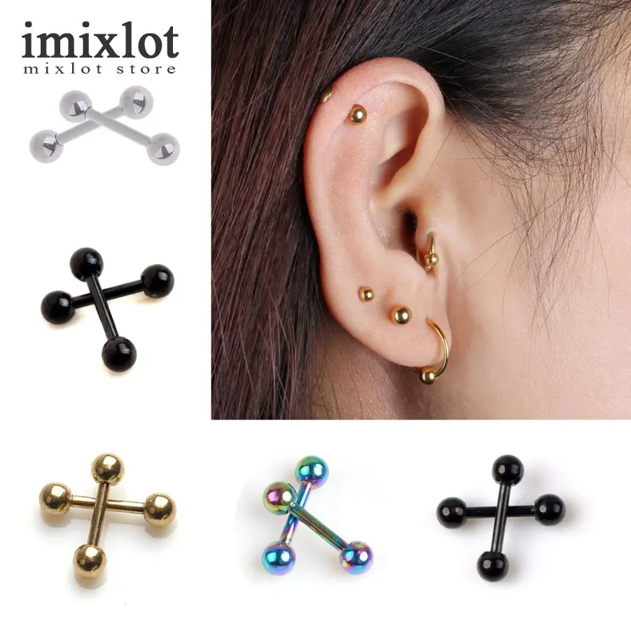 5-tlg. Edelstahl Ohrstecker Set - Dünne Stange Mit Zirkon Steinen