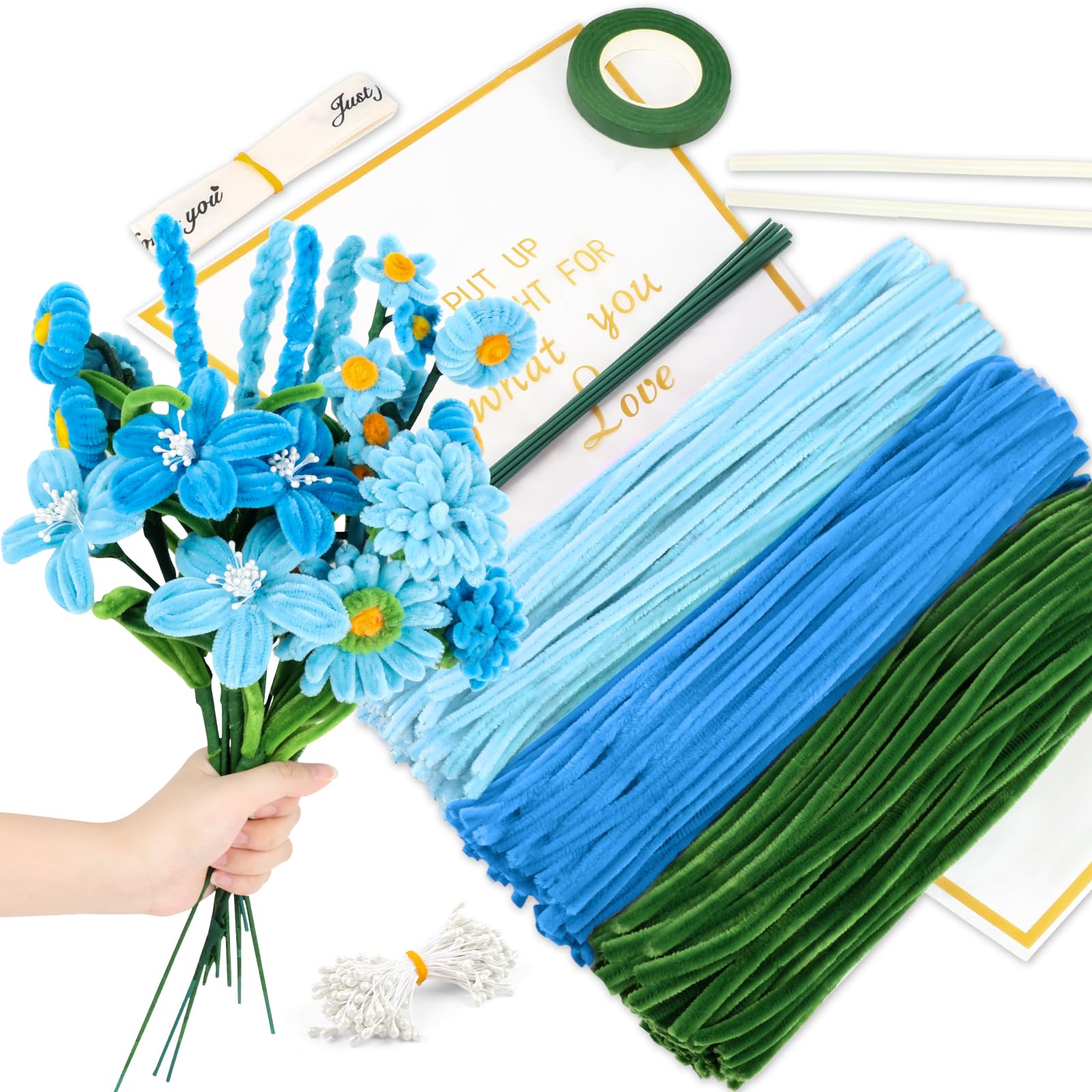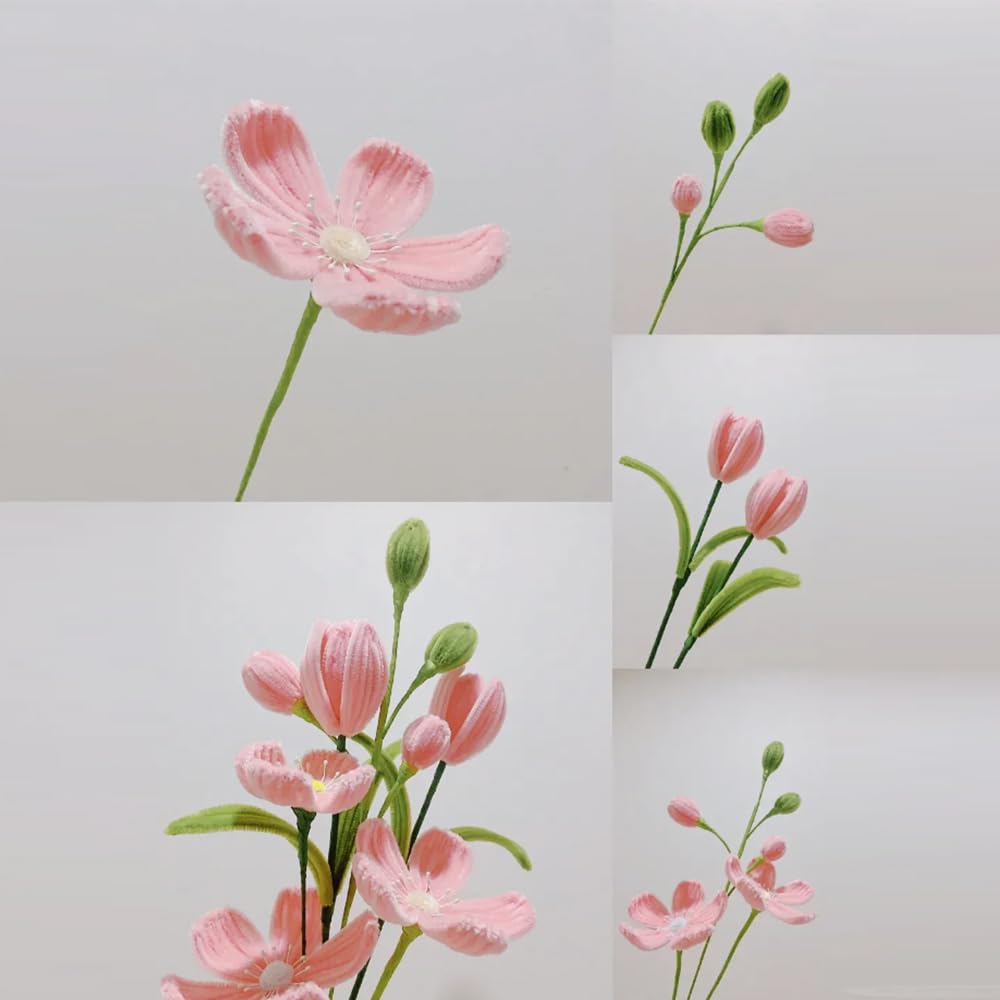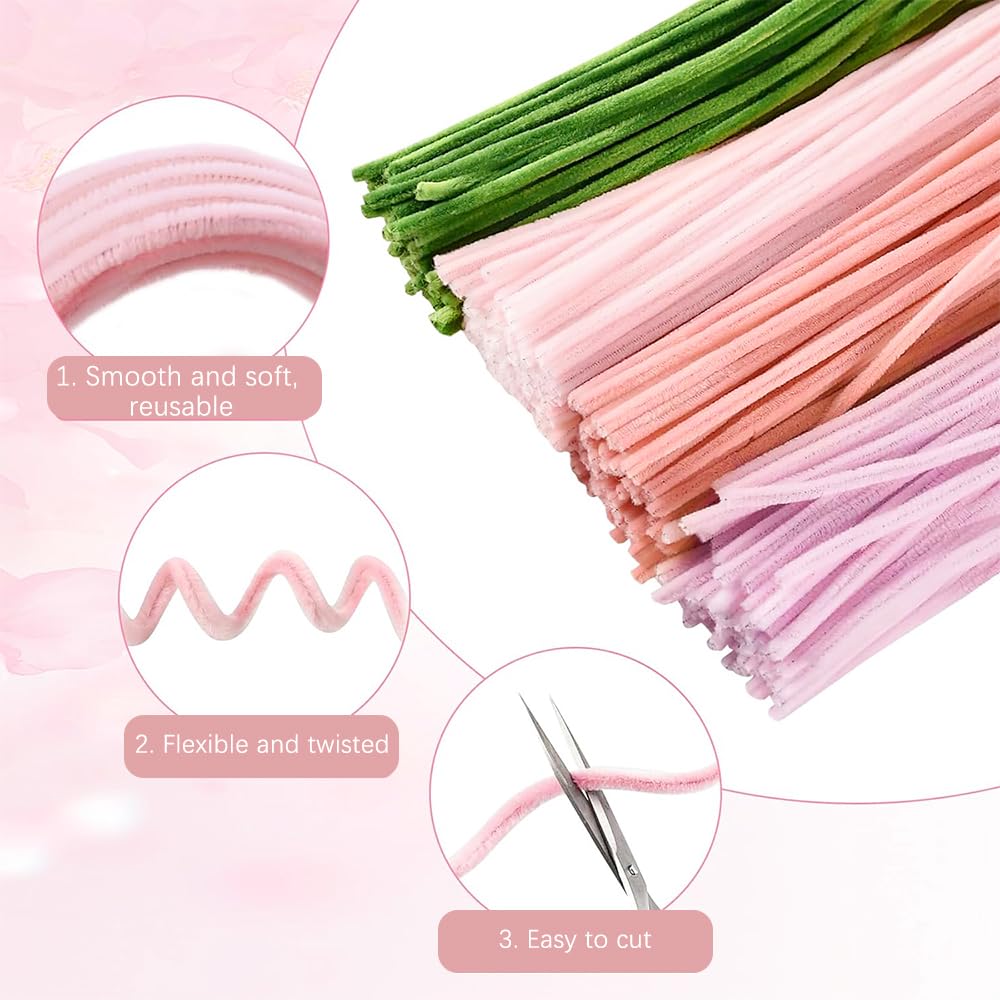 KBIBCK 400 Stück Pfeifenreiniger Blumen Set - DIY Bastelset Für Blumensträuße & Dekoration