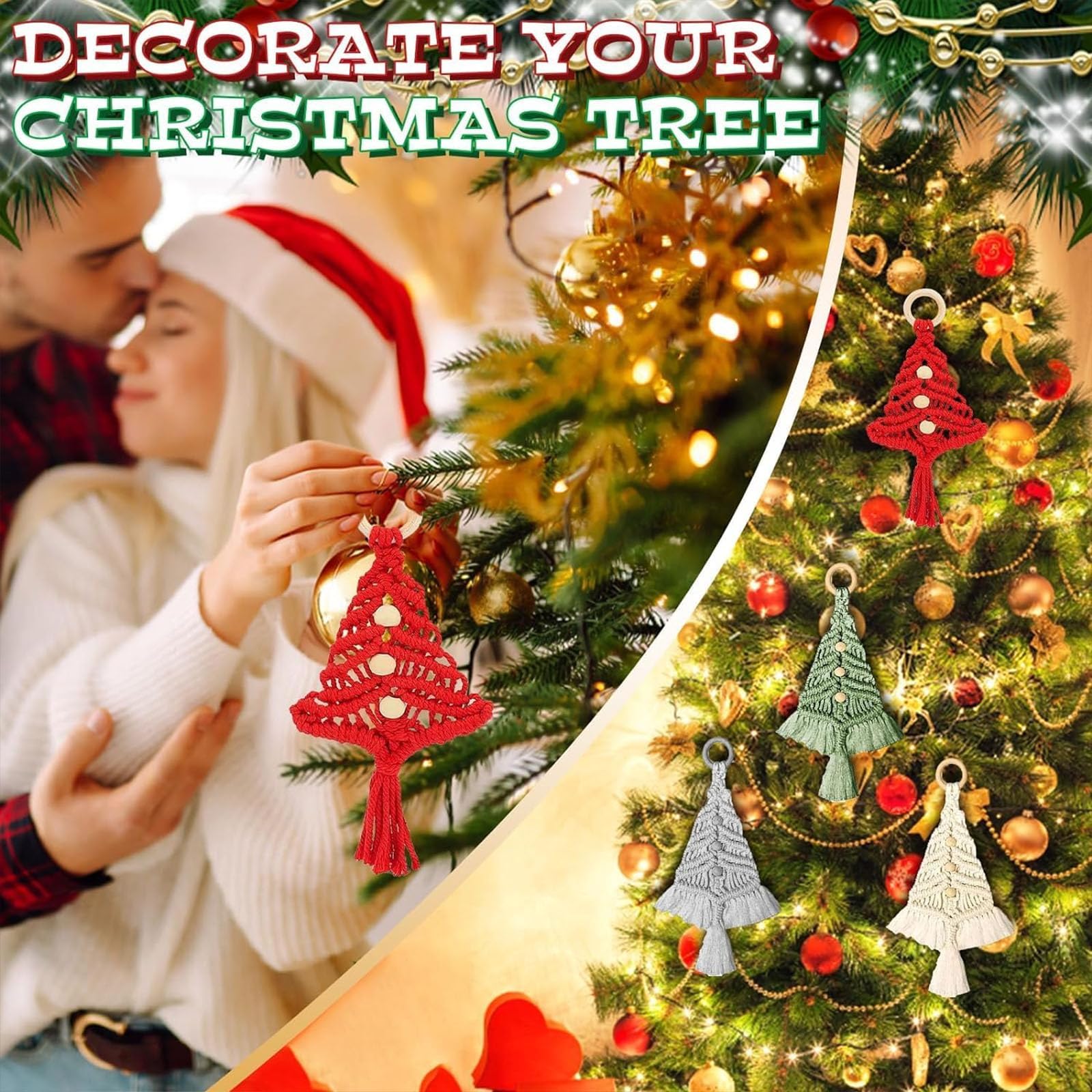 Makramee Weihnachten Set - DIY Bastelset Mit Garn, Holzringen & Perlen