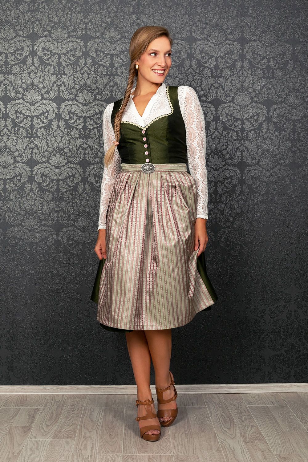 Oktoberfest, here we come! Dieses komplette 3-teilige Dirndl-Set hat alles was du brauchst: Dirndlkleid in eleganter Midi-Länge, passende Bluse und hübsche Schürze. Perfekt fürs Oktoberfest, Volksfeste oder andere traditionelle Anlässe. Die klassische Länge gibt dir Bewegungsfreiheit und sieht trotzdem super feminin aus. Einfach anziehen und du bist bereit fürs Wiesn-Vergnügen! Ob mit oder ohne Dekolleté - dieses Dirndl setzt dich perfekt in Szene. Mach dich bereit für unvergessliche Fest-Tage!