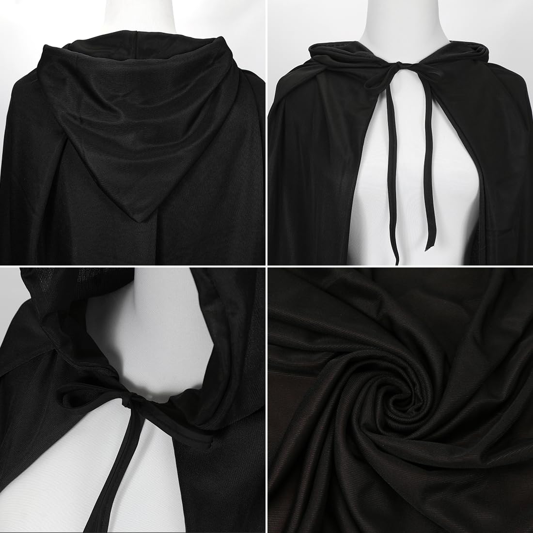 Verwandle dich in eine mysteriöse Hexe mit diesem komplettem Kostüm-Set! Enthalten ist alles was du brauchst: Ein eleganter 175cm langer Hexenumhang aus strukturiertem Satin, ein faltbarer Hexenhut, Spinnennetz-Strumpfhose, Spitzenmaske, Ärmel, 10 schwarze Fingernägel und 2 Tattoo-Aufkleber. Das schwarze Design mit Spinnenelementen verströmt ein elegantes, dunkles Flair das auf jeder Party Aufmerksamkeit garantiert. Perfekt für Halloween, Karneval, Mottopartys oder Cosplay-Events. Die Accessoires lassen sich auch super mit Alltagskleidung kombinieren für einen individuellen Look. Ob für Gothic-, Vampir- oder Zauberer-Partys - mit diesem Set bist du der Star der Nacht! Einfach anziehen und den magischen Charme entfesseln. Für alle die es etwas gruselig und doch stylisch mögen!