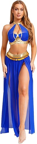 Fühle dich wie eine orientalische Prinzessin! Dieses Bauchtanz-Set besteht aus Crop Top und Rock - perfekt abgestimmt. Aus 90% Polyester, 10% Elastan - super dehnbar und bequem. Der rückenfreie Neckholder ist richtig sexy und betont deine Figur. Der Rock mit metallischen Pailletten-Quasten glitzert bei jeder Bewegung - einfach magisch! In vielen Farben erhältlich: Blau, Schwarz, Weiß, Gold, Rot, Himmelblau. Perfekt für Bauchtanz-Aufführungen, Halloween-Partys oder Themen-Events. Wird dein neues Lieblings-Outfit - garantiert!