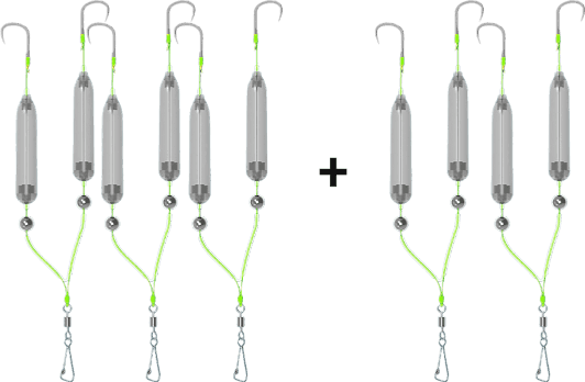 5 Angelhaken Set Doppelhaken - Fluoreszierend Gelb Für Süß- & Salzwasser