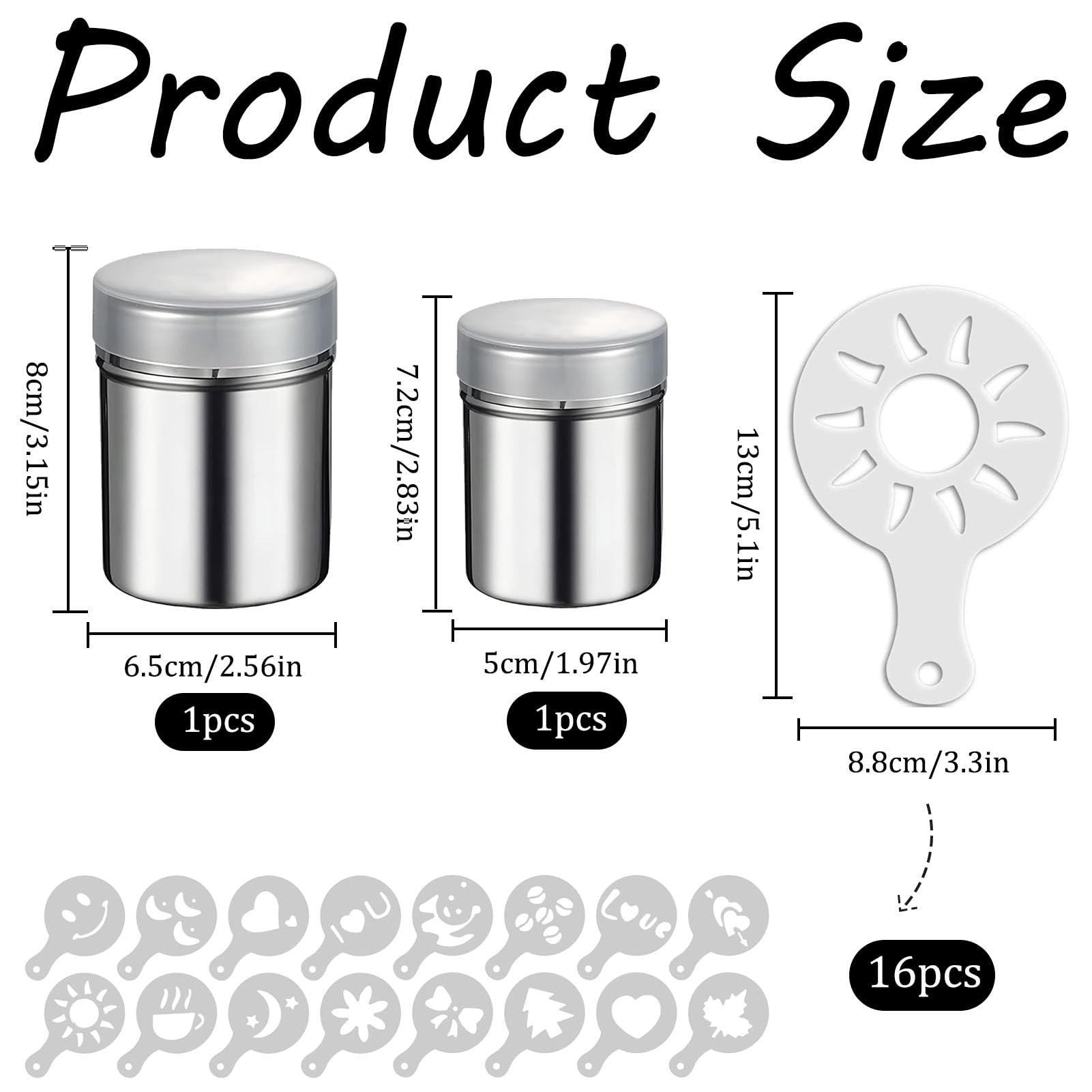 Perfekt für alle Hobby-Bäcker und Kaffeeliebhaber! Dieses HAMKU 2er Set aus Edelstahl macht das Verzieren von Kuchen, Cappuccino und Desserts zum Kinderspiel. Aus lebensmittelechtem Edelstahl - rostfrei, geruchlos und super langlebig! Das feinmaschige Sieb verteilt Puderzucker, Kakao oder Zimt gleichmäßig ohne Klumpen. Die durchsichtige ABS-Abdeckung hält das Pulver trocken und frisch. Einfach zu reinigen - nur mit Wasser abspülen (nicht spülmaschinenfest!). Mit 5,5x8cm Größe und 6 Unzen Fassungsvermögen ideal für die Küche. Inklusive Etiketten zum Beschriften. Ob für Kaffeepulver, Gewürze oder Mehl - diese Streuer sind echte Allrounder! Mach deine Backkreationen noch professioneller und behalte alle Pulver ordentlich sortiert. Einfach genial durchdacht und super praktisch im Handling!