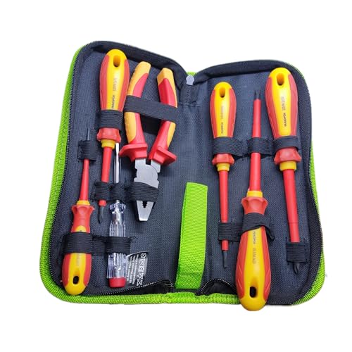 Perfektes Werkzeug für alle Elektro-Arbeiten! Dieses 13-teilige VDE-Schraubendreher-Set hat alles, was du brauchst - und das komplett isoliert für sicheres Arbeiten bis 1000V. Mit 11 verschiedenen Aufsätzen, einem praktischen Griff und sogar einem Spannungsprüfer bist du für jede Montage bestens ausgestattet. Die magnetischen Spitzen halten Schrauben sicher fest - kein Ärger mehr mit verlorenen Schrauben in schwer zugänglichen Ecken! Aus hochwertigem Chrom-Vanadium-Stahl gefertigt, sind diese Schraubendreher extrem verschleißfest und langlebig. Der ergonomische Griff liegt perfekt in der Hand und ermüdet auch bei längerer Arbeit nicht. Das Stecksystem ist super praktisch - einfach die Spitzen wechseln und weiter geht's! Alles sicher verstaut in einer robusten Aufbewahrungsbox. Ob für DIY-Projekte, Möbelmontage oder professionelle Elektroinstallationen - dieses Set ist dein zuverlässiger Partner. Sicherheit geht vor - und mit diesen isolierten Schraubendrehern bist du auf der sicheren Seite! Einfach auspacken und loswerken!