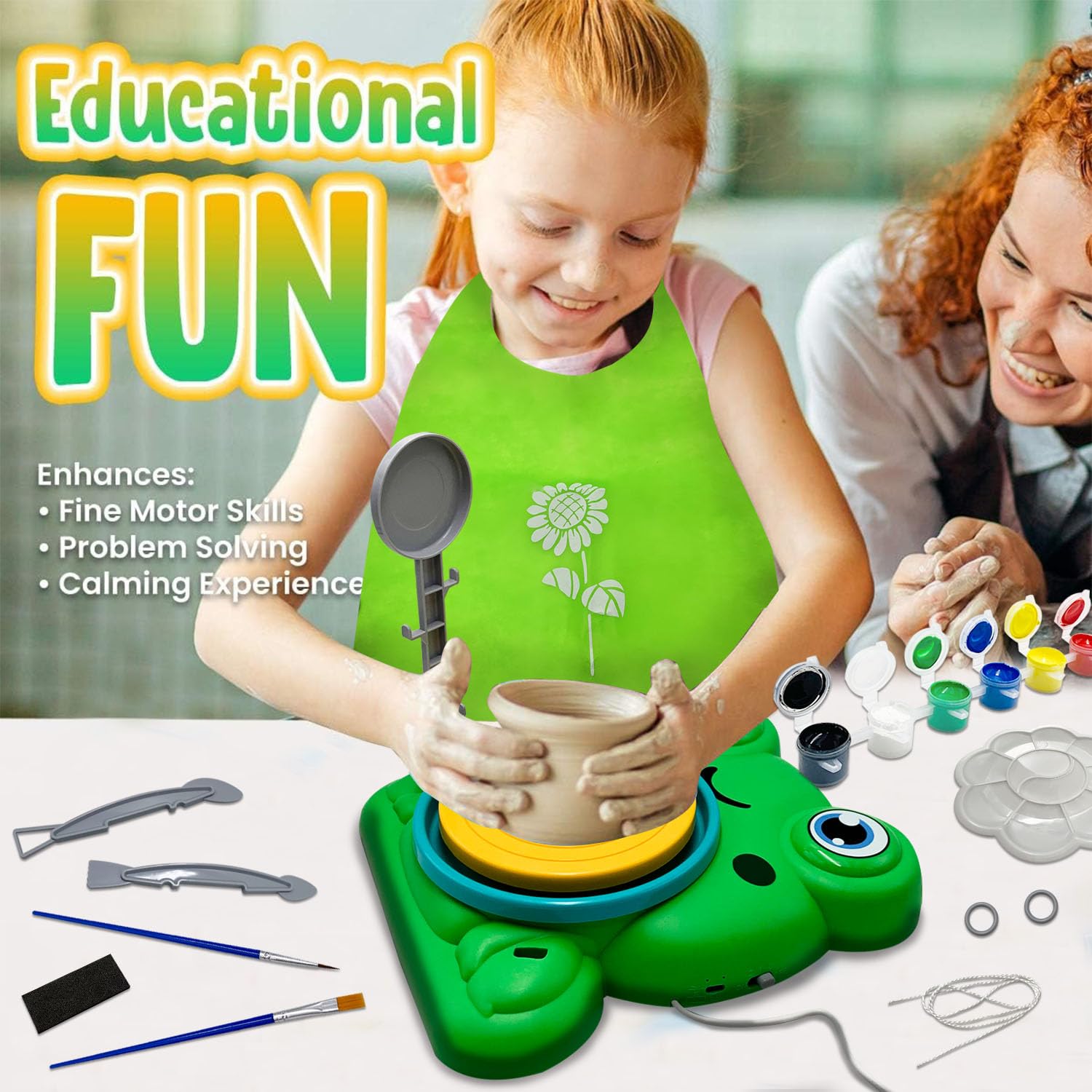 Kreativität pur! 🎨 Dieses komplett Töpfer-Set bringt die Töpferei direkt zu dir nach Hause - ganz ohne Brennofen! Enthält alles, was du brauchst: Drehscheibe, lufttrocknenden Ton und verschiedene Modellierwerkzeuge. Super für Eltern-Kind-Nachmittage oder einfach zum Abschalten nach der Arbeit. Die Scheibe ist kompakt und einfach zu bedienen - selbst absolute Anfänger kriegen das hin! Forme Tassen, Schalen oder kleine Skulpturen. Der Ton trocknet an der Luft, keine komplizierte Technik nötig. Perfekt für Kinder ab 6 Jahren und Erwachsene. Mach dein Wohnzimmer zur Künstlerwerkstatt! Inklusive Aufbewahrungsbox für Ordnung. Viel Spaß beim Kneten und Gestalten!