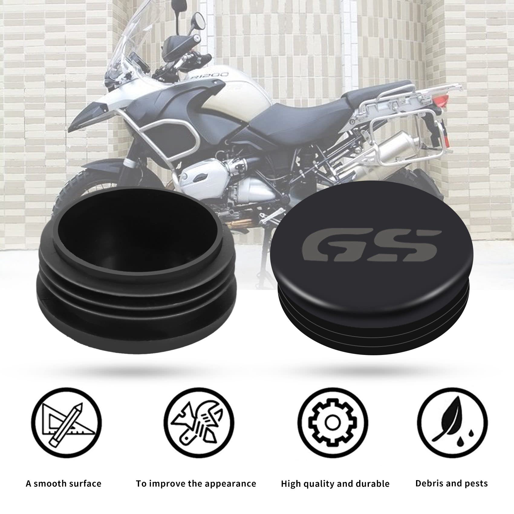 Mach deine BMW R1200GS LC Adventure noch schicker mit diesen praktischen Rahmenkappen! Das 13-teilige Set aus schwarzem Kunststoff deckt alle Rahmenlöcher perfekt ab und verhindert so, dass sich Schmutz, Staub und Feuchtigkeit in den Hohlräumen sammeln. Die glatte Oberfläche sieht aus wie vom Werk und verbessert das Gesamterscheinungsbild deiner Maschine erheblich. Einfach in Sekunden anzubringen - keine Werkzeuge oder Kleber nötig. Getestet für lange Haltbarkeit und perfekt passend für die Modelle 2013 bis 2016. Die Kappen schützen nicht nur vor Verschmutzung, sondern geben deiner BMW auch einen richtig cleanen Look. Besonders praktisch nach der Reinigung oder bei Regenfahrten. Ein kleines Detail mit großer Wirkung! Einfach bestellen, aufstecken und sich über das aufgewertete Erscheinungsbild freuen. Ein Upgrade, das wirklich jeder R1200GS-Fahrer zu schätzen weiß - funktional, gut aussehend und super einfach zu montieren!
